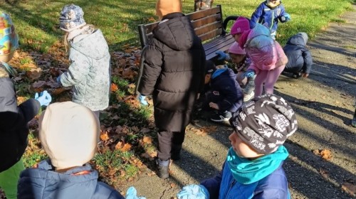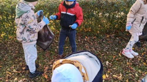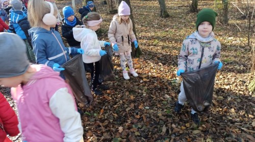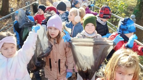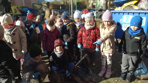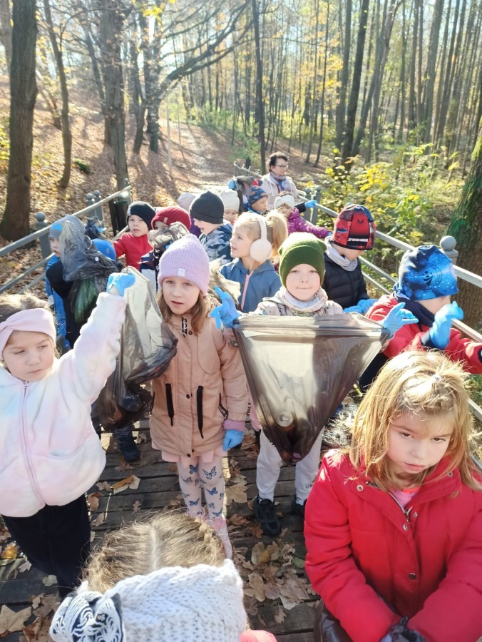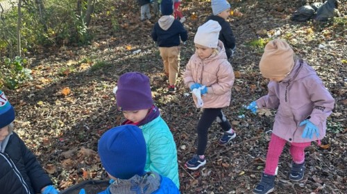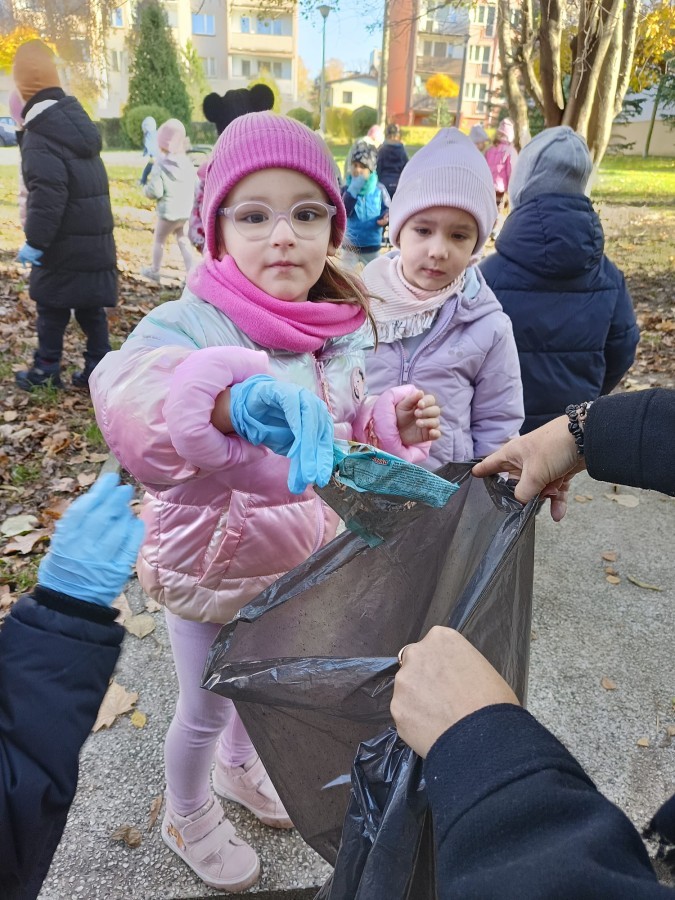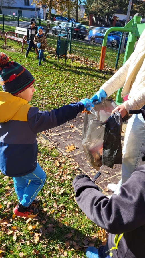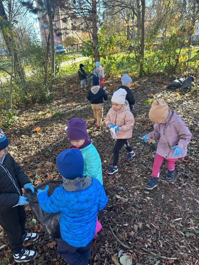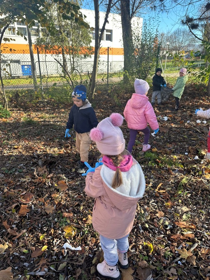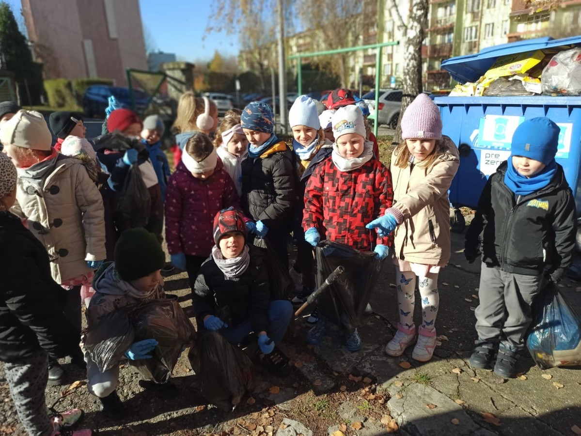 W czwartek, 6 listopada 2025 r., nasze przedszkole wzięło udział w Akcji Sprzątania PreZero, która odbyła się w ramach działań „Porządkowych” związanych z 16. edycją konkursu „Szanuj energię, chroń klimat”. Dzieci zaopatrzone w rękawiczki i worki na śmieci, pełne zapału i z wielkim zaangażowaniem sprzątały okoliczne trawniki, chodniki i place zabaw. Akcja odbyła się w formie zabawy. Dzieci dowiedziały się, że Ziemia jest jedyną zamieszkaną planetą i jednocześnie naszym domem, więc musimy chronić ją, by korzystać z jej uroków i dbać o nią jak najlepiej potrafimy.