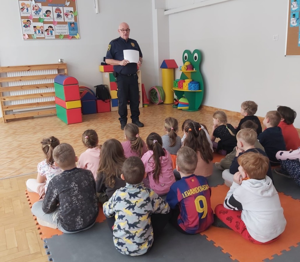 Spotkanie pod hasłem „Bezpieczne ferie” miało na celu zwiększenie świadomości dzieci na temat zagrożeń, jakie mogą pojawić się podczas zimowego wypoczynku. Dzięki rozmowie z funkcjonariuszem dzieci poznały najczęściej występujące niebezpieczne sytuacje, takie jak zabawy na zamarzniętych zbiornikach wodnych, niewłaściwe korzystanie z sanek, nart czy łyżew, kontakt z nieznajomymi oraz nieostrożne poruszanie się po drodze zimą.