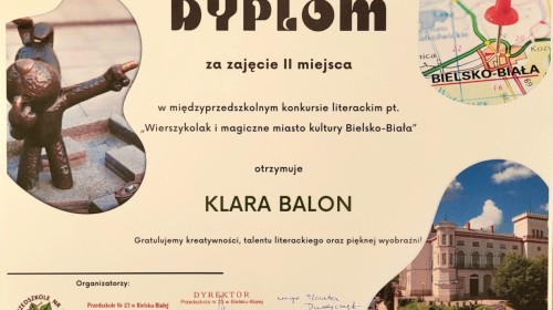 Drugie miejsce w konkursie literackim - Klara z grupy Pszczółek