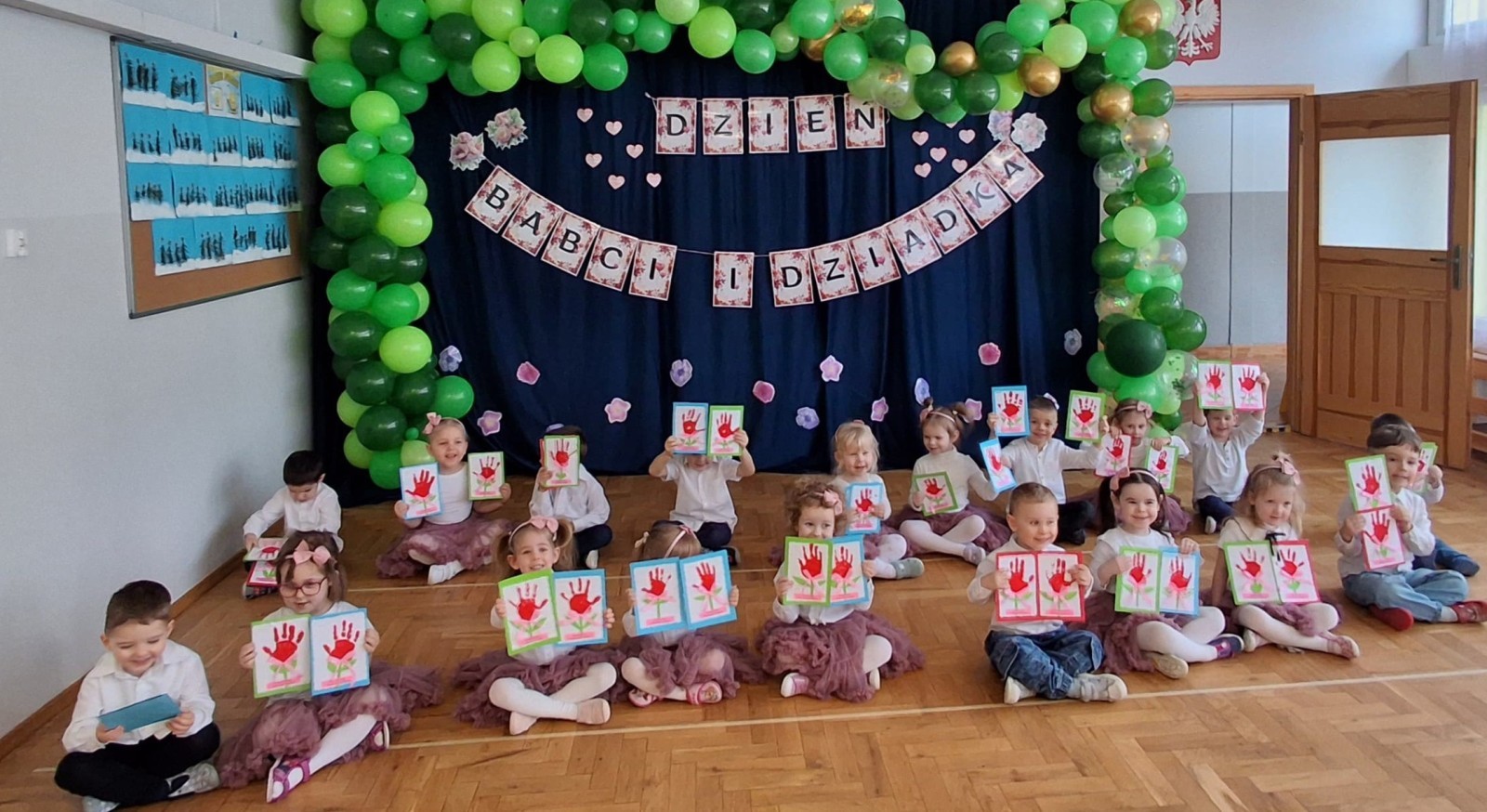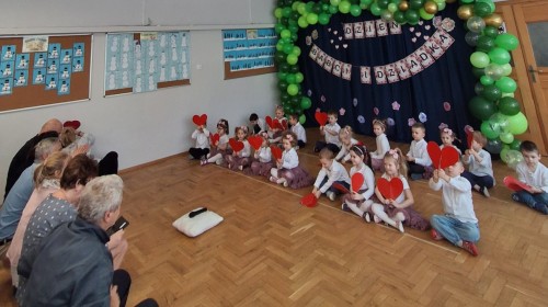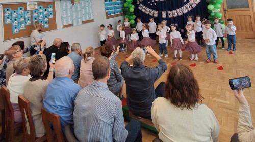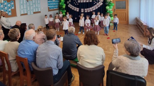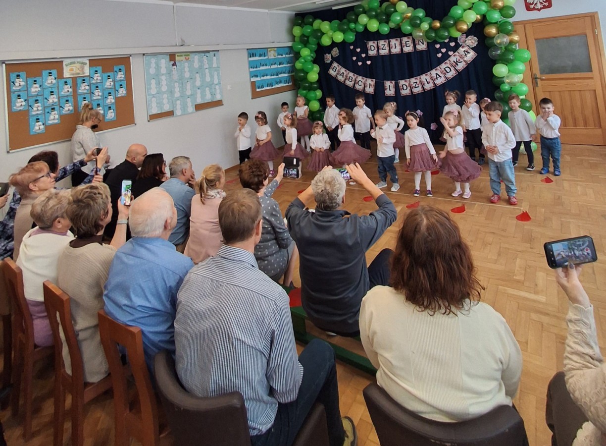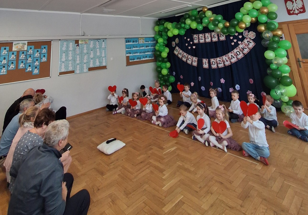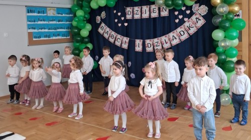 Dzień Babci i Dziadka w grupie Myszek był wyjątkowym i bardzo wzruszającym wydarzeniem. Dzieci z ogromnym zaangażowaniem zaprezentowały przygotowany program artystyczny, na który złożyły się krótkie wierszyki, piosenki oraz proste układy ruchowe. Występ odbył się w serdecznej, ciepłej atmosferze, pełnej uśmiechów, radości i dumy ze strony zaproszonych gości.