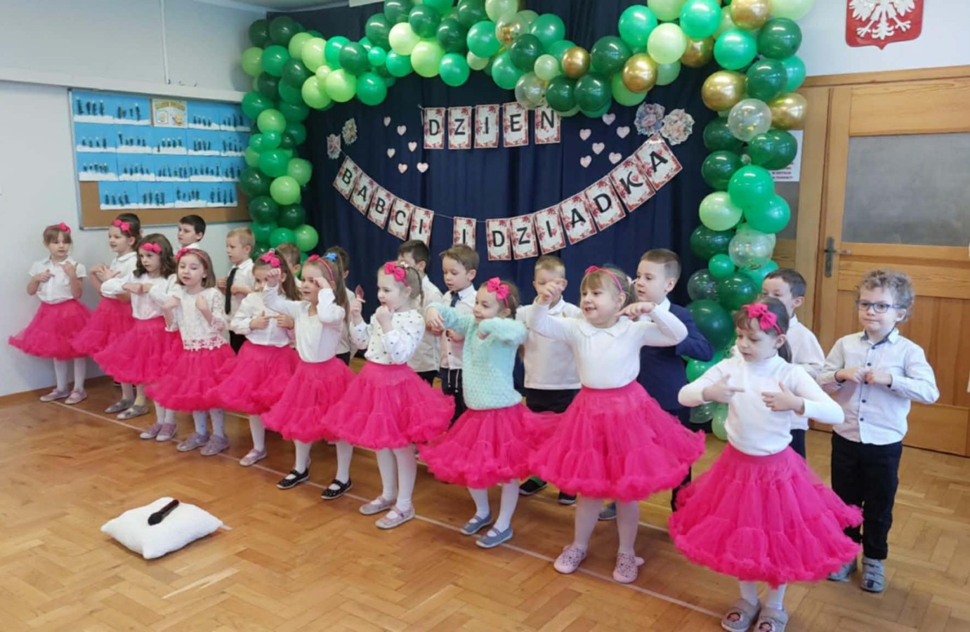 Dzisiaj w grupie Pszczółek odbył się Dzień Babci i Dziadka. Z tej okazji dzieci przygotowały występ artystyczny, podczas którego zaprezentowały wiersze, piosenki oraz układ taneczny. Mali artyści z dużym zaangażowaniem i radością wystąpili przed zaproszonymi gośćmi, sprawiając im wiele wzruszeń i uśmiechu.