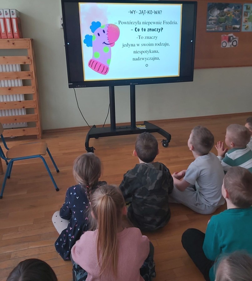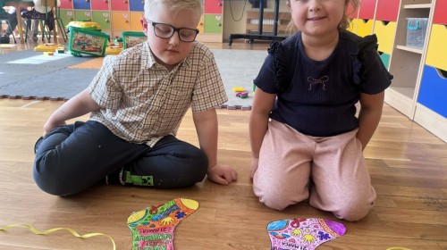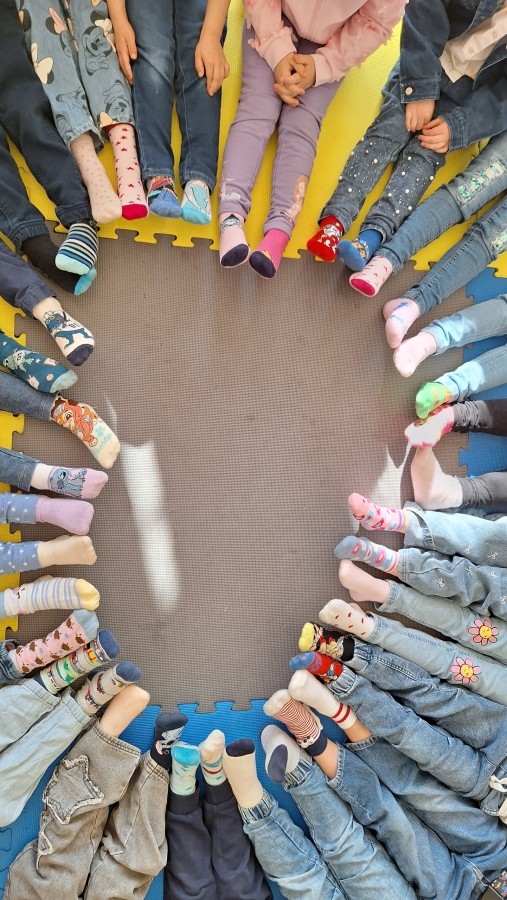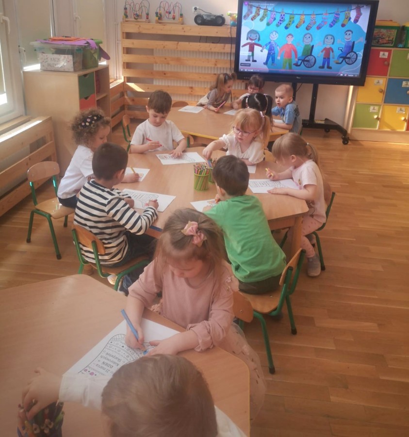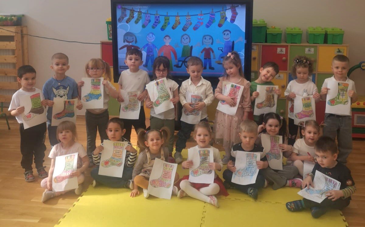W trakcie zajęć rozmawialiśmy o tym, czym jest inność i dlaczego każdy z nas jest wyjątkowy. Dzieci uczestniczyły w zabawach integracyjnych, oglądały krótkie materiały edukacyjne oraz brały udział w pracach plastycznych – powstały piękne, kolorowe skarpetki, które ozdobiły nasze sale.