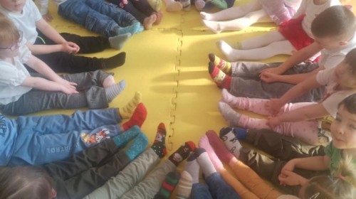 Tego dnia dzieci przyszły ubrane w dwie różne, kolorowe skarpetki – symbol niedopasowania chromosomów, a jednocześnie znak solidarności z osobami z zespołem Downa. Już od rana panowała radosna atmosfera, pełna uśmiechu, barw i pozytywnej energii.