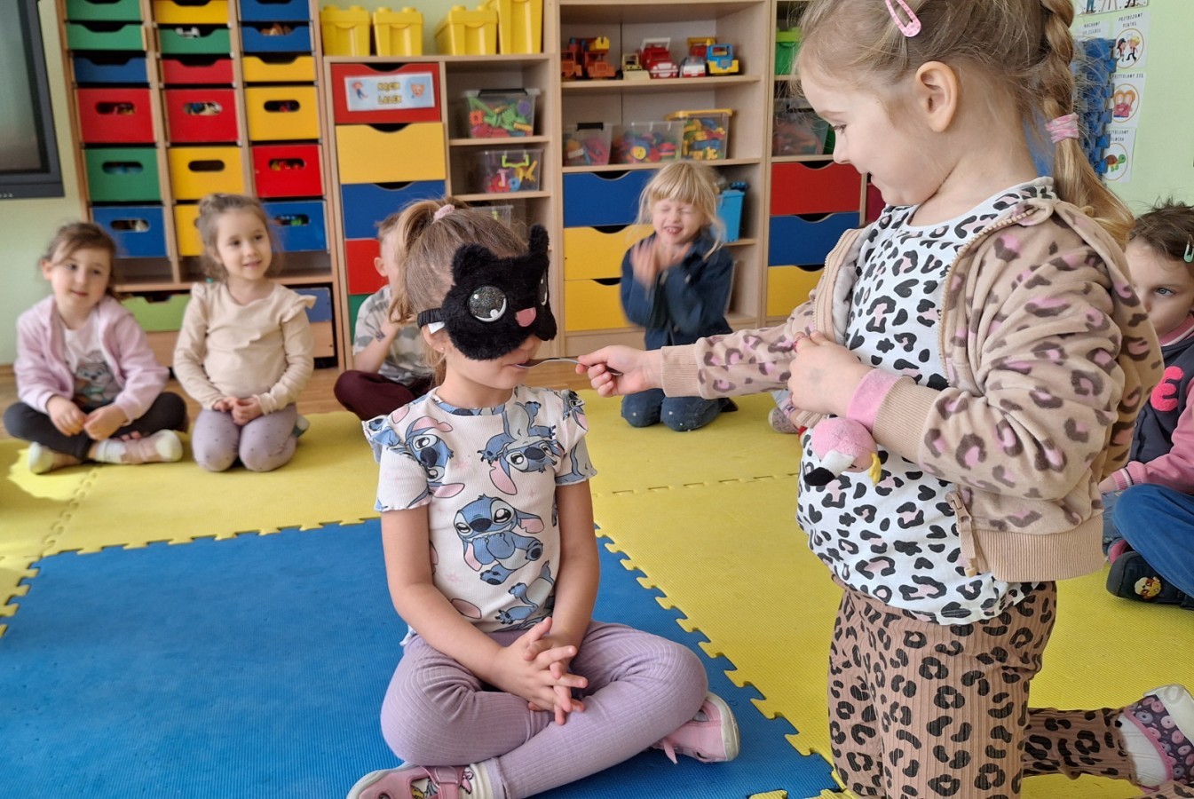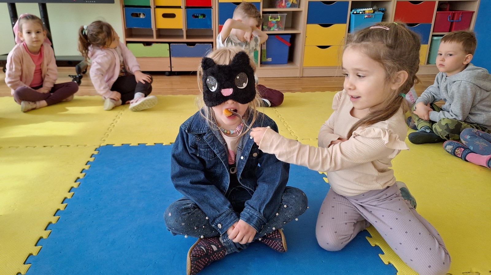 Podczas zajęć dzieci miały zasłonięte oczy i za pomocą smaku próbowały rozpoznać wybrane owoce oraz przyprawy. Było to dla nich nie tylko ciekawe doświadczenie, ale także świetna zabawa, która pobudziła ich ciekawość i zaangażowanie.