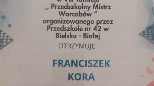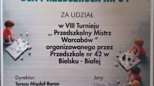 I miejsce w VIII TURNIEJU "PRZEDSZKOLNY MISTRZ WARCABÓW" -Misie
