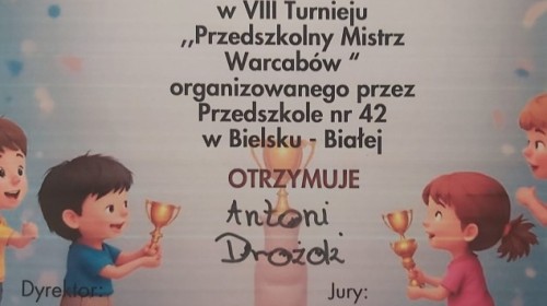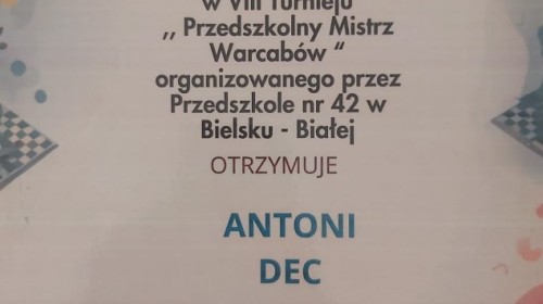 W dniu 3 lutego 2026 r. dzieci z naszego przedszkola wzięły udział w VIII Turnieju "Przedszkolny Mistrz Warcabów", organizowanym przez Przedszkole nr 42 w Bielsku-Białej.