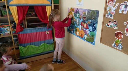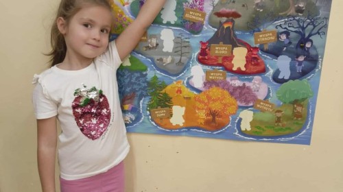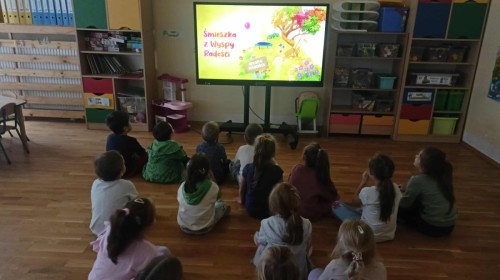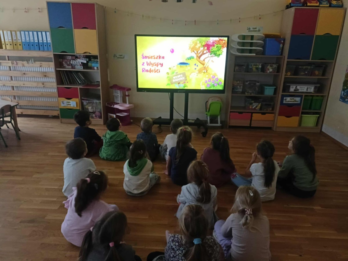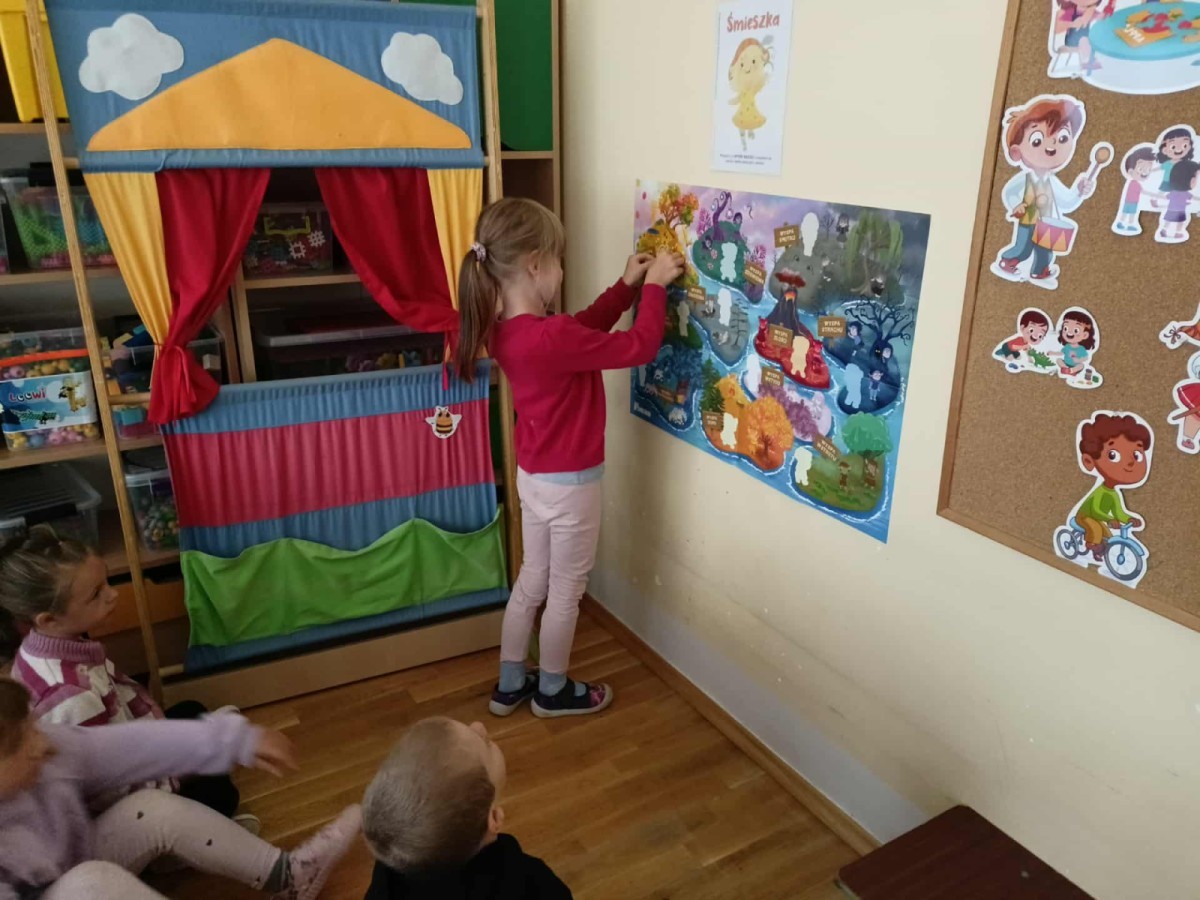 Pierwszą bohaterką, jaką poznaliśmy, była Śmieszka z Wyspy Radości. Wysłuchaliśmy bajki o Śmieszce i wspólnie odkrywaliśmy, czym jest radość – jak ją rozpoznać, co nas cieszy i jak dzielić się nią z innymi.