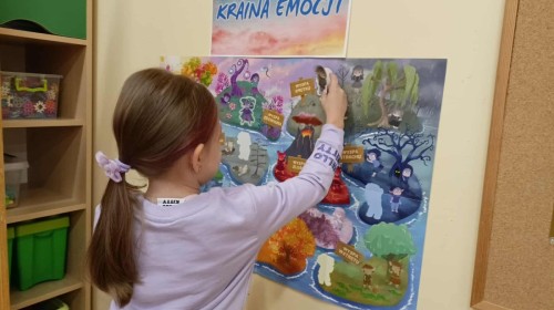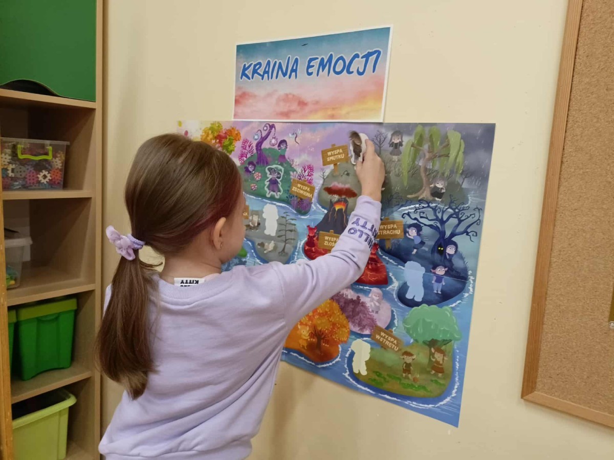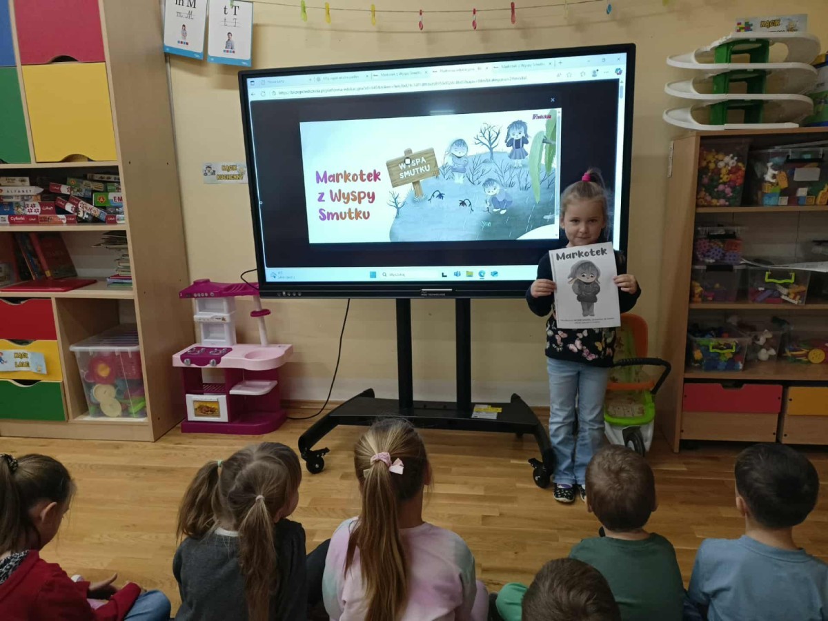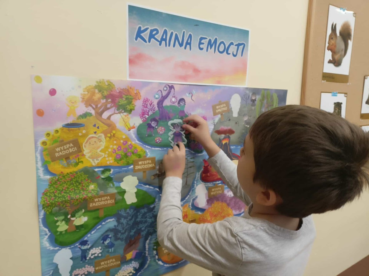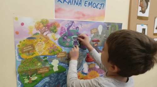W naszej Krainie Emocji pojawili się nowi mieszkańcy – Pan Łał z Wyspy Zdziwienia oraz Markotek z Wyspy Smutku. Dzieci wysłuchały bajek o nowych Czuciakach, a następnie wspólnie rozmawiały o tym, czym jest zdziwienie i smutek.