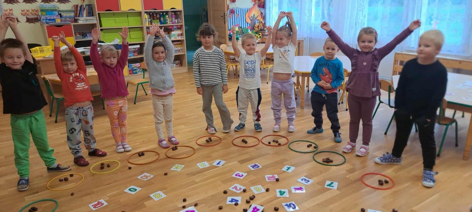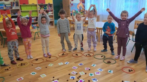 Grupa LISKI bierze udział w projekcie edukacyjnym "Jesień zmysłami malowana". Dziś wykorzystaliśmy dary natury - kasztany, liście i żołędzie - do zabaw matematycznych. Podczas zajęć: poznawaliśmy strukturę darów natury - sprawdzaliśmy, które są miękkie, które twarde, a które gładkie; uczyliśmy się liczyć; tworzyliśmy zbiory oraz poznawaliśmy jesienne skarby wszystkimi zmysłami. To był dzień pełen odkryć, radości i jesiennych inspiracji.