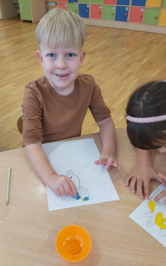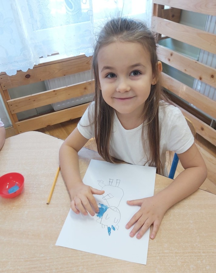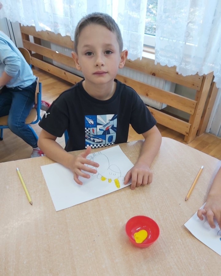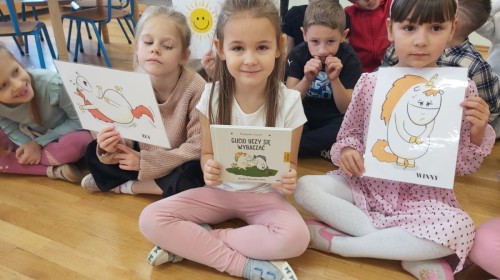 Dzieci zrealizowały kolejne zadanie pt. „Gucio uczy się przebaczać”. Podczas zajęć zapoznały się z nową częścią książeczki, w której bohater – jednorożec Gucio – dowiedział się, czym jest przebaczanie, na przykładzie sytuacji, gdy jego kuzynka Jola przez nieuwagę zniszczyła jego pracę. Po lekturze odbyła się rozmowa na temat wybaczania i radzenia sobie z trudnymi emocjami. Na zakończenie zajęć dzieci malowały farbami grzywę Gucia w kolorach uczuć, które towarzyszyły bohaterowi w opowiadaniu.