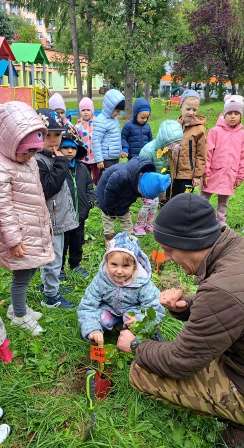 W dniu dzisiejszym w naszym przedszkolu miały miejsce bardzo ciekawe warsztaty. Nasz ogród zamienił się w las, w którym mieszkały różne gatunki zwierząt i ptaków. Dzieci poznały leśne zwierzęta, usłyszały je i wytropiły, rozpoznały grzyby jadalne i trujące oraz poznały owady leśne. Na zakończenie przedszkolaki posadziły sadzonkę drzewka oraz otrzymały słodki upominek.