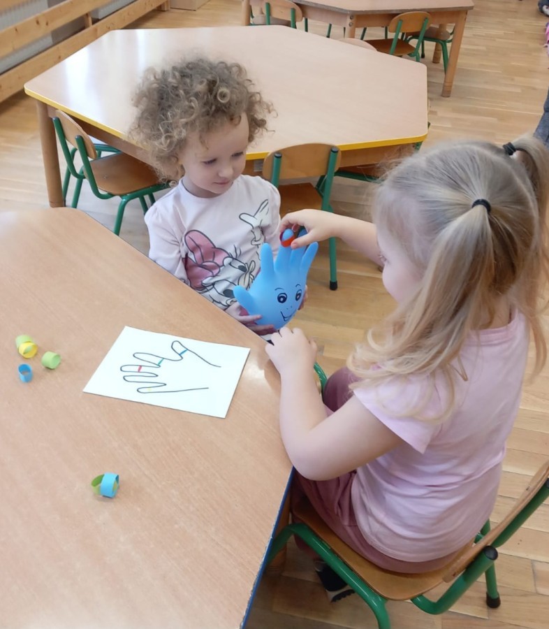 W ramach innowacji pedagogicznej w grupie Myszki ,,Matematyka na wesoło w świecie przedszkolaka" w miesiącu styczniu dzieci bawiły się kolorami, rozpoznawały kolory poprzez układanie rymów, ćwiczyły spostrzegawczość, w toku działania dokonywały prostych operacji umysłowych. Podczas ciekawych zabaw matematycznych dzieci osiągnęły lepsze wyniki w dziedzinie matematyki.