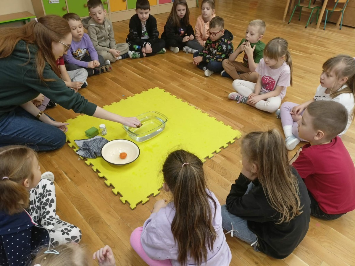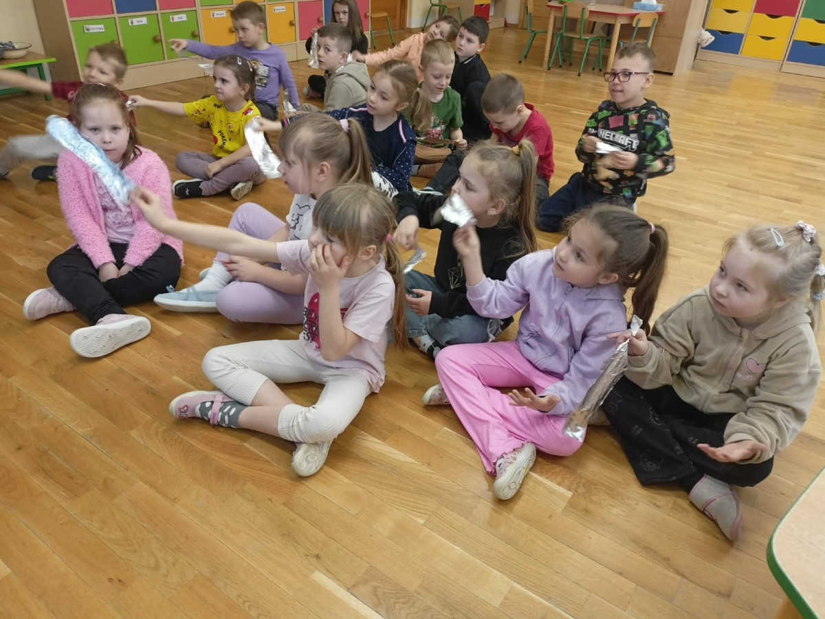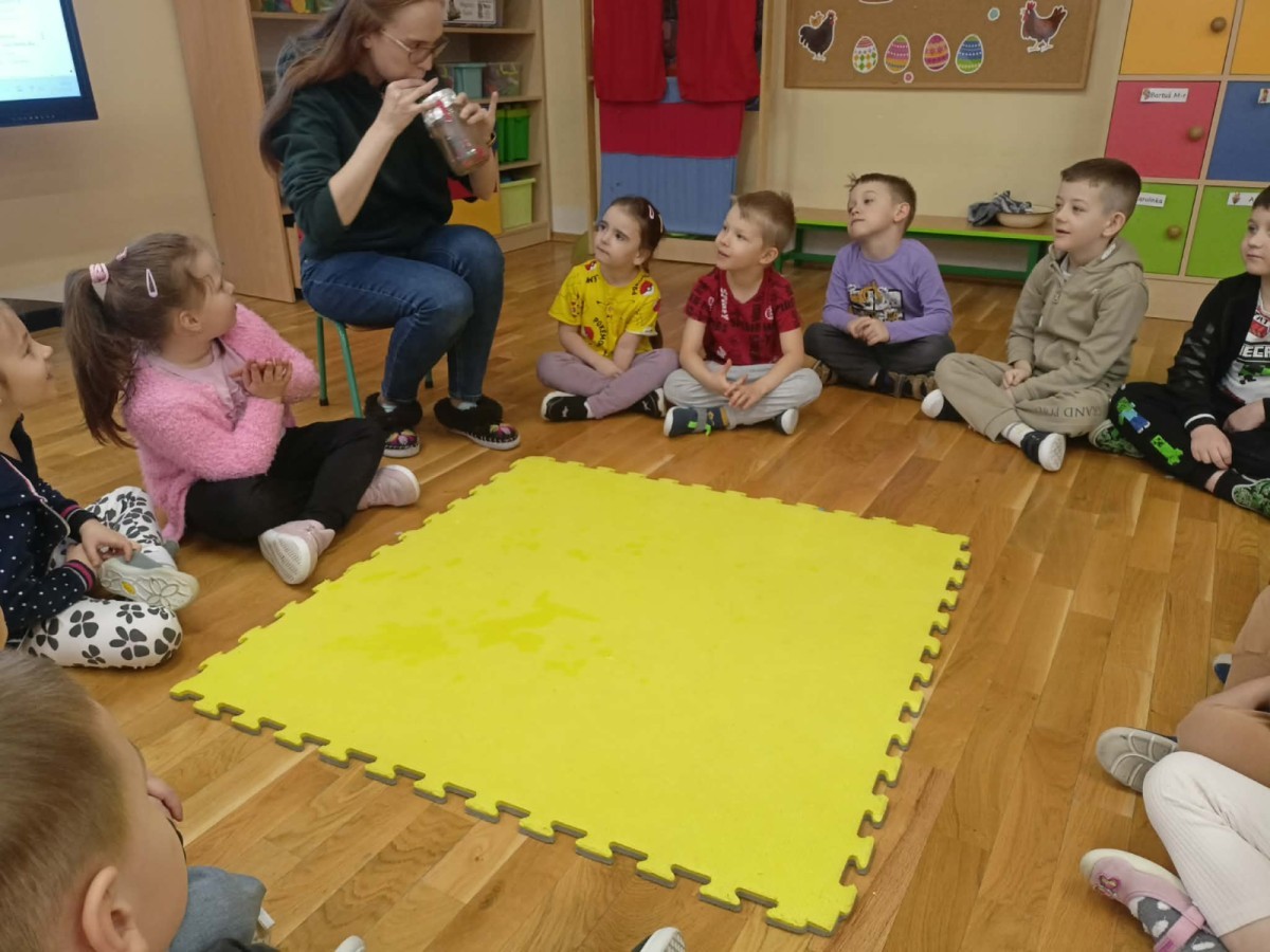 W grupie Pszczółek odbyły się zajęcia o żywiołach, przygotowane i poprowadzone przez praktykantkę – Panią Ewę. Dzieci obejrzały prezentację na temat wiatru oraz wzięły udział w różnorodnych zabawach badawczych, słuchowych i ruchowych. Przedszkolaki sprawdzały, czy powietrze istnieje, wykonując proste eksperymenty. Nie zabrakło także zabaw logicznych i elementów kodowania. Był to dzień pełen aktywności i wspólnej nauki poprzez zabawę.