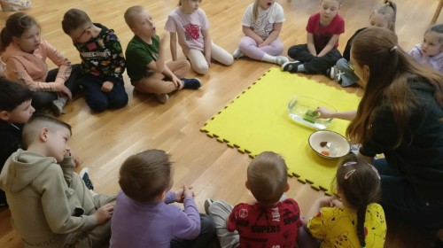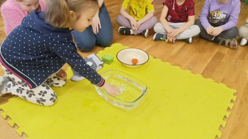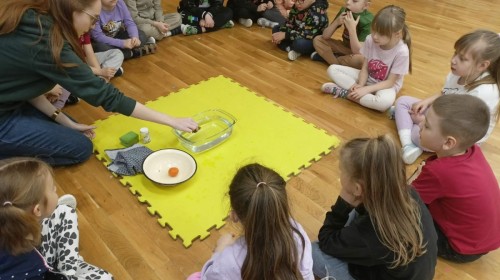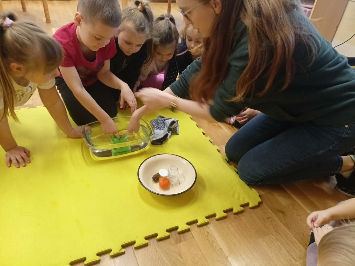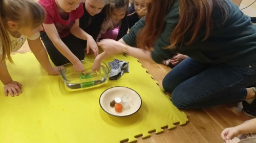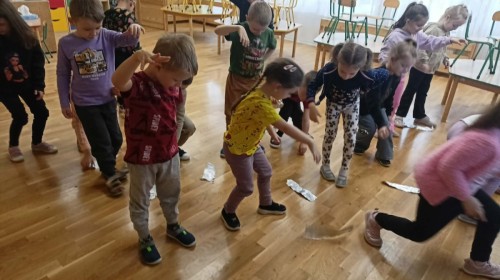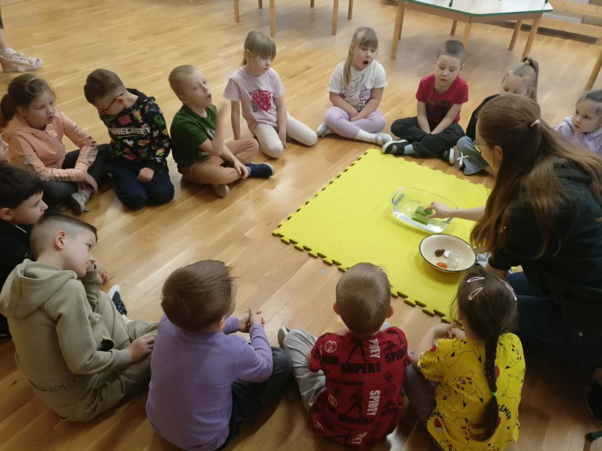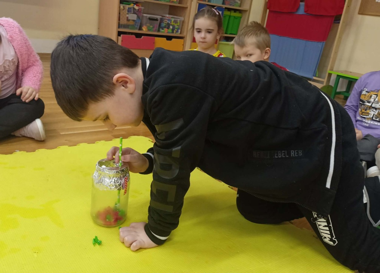 W grupie Pszczółek odbyły się zajęcia o żywiołach, przygotowane i poprowadzone przez praktykantkę – Panią Ewę. Dzieci obejrzały prezentację na temat wiatru oraz wzięły udział w różnorodnych zabawach badawczych, słuchowych i ruchowych. Przedszkolaki sprawdzały, czy powietrze istnieje, wykonując proste eksperymenty. Nie zabrakło także zabaw logicznych i elementów kodowania. Był to dzień pełen aktywności i wspólnej nauki poprzez zabawę.