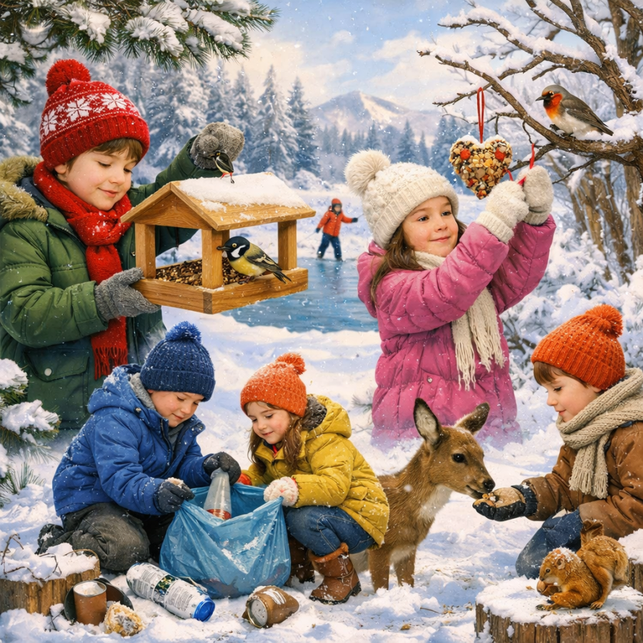 W trakcie zajęć dzieci uczyły się również, jak mogą dbać o środowisko na co dzień – oszczędzać energię, nie palić śmieci, segregować odpady oraz wybierać ekologiczne zachowania. Dużą uwagę poświęcono także pomocy zwierzętom zimą. Motylki poznały sposoby dokarmiania ptaków, dowiedziały się, dlaczego zwierzęta potrzebują naszej pomocy w mroźne dni oraz jak robić to w sposób bezpieczny i odpowiedzialny.
