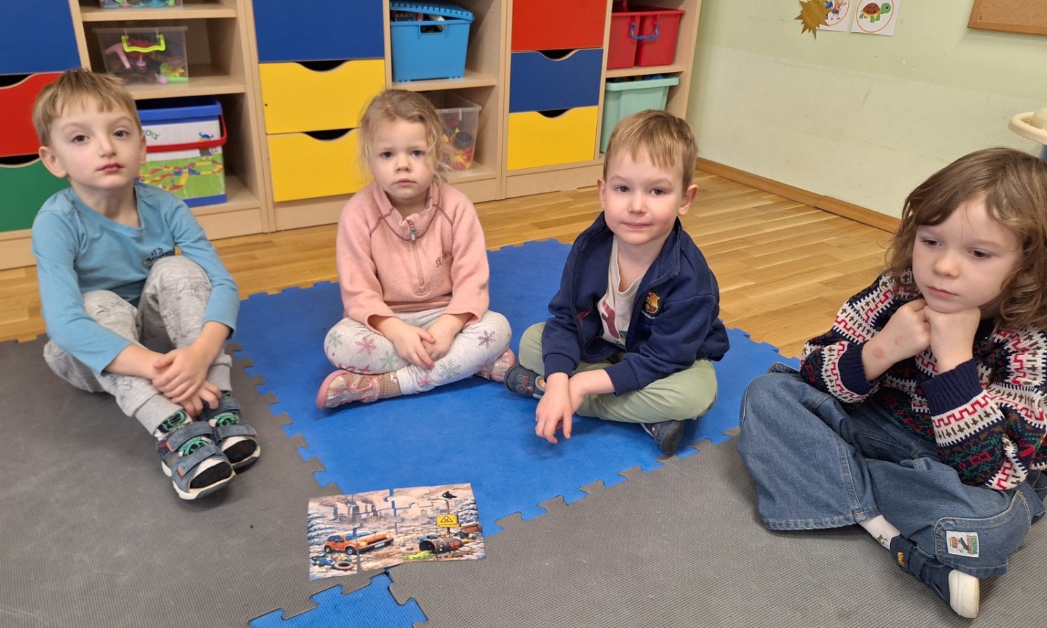 Podczas zajęć o tematyce ekologicznej dzieci z grupy Motylków w aktywny i radosny sposób poznawały, jak dbać o przyrodę zimą. Poprzez różnorodne doświadczenia, zabawy ruchowe oraz rozmowy kierowane dzieci dowiedziały się, czym jest smog i jak powstaje. Dzięki prostym eksperymentom zrozumiały, że dym i spaliny zanieczyszczają powietrze, którym wszyscy oddychamy.