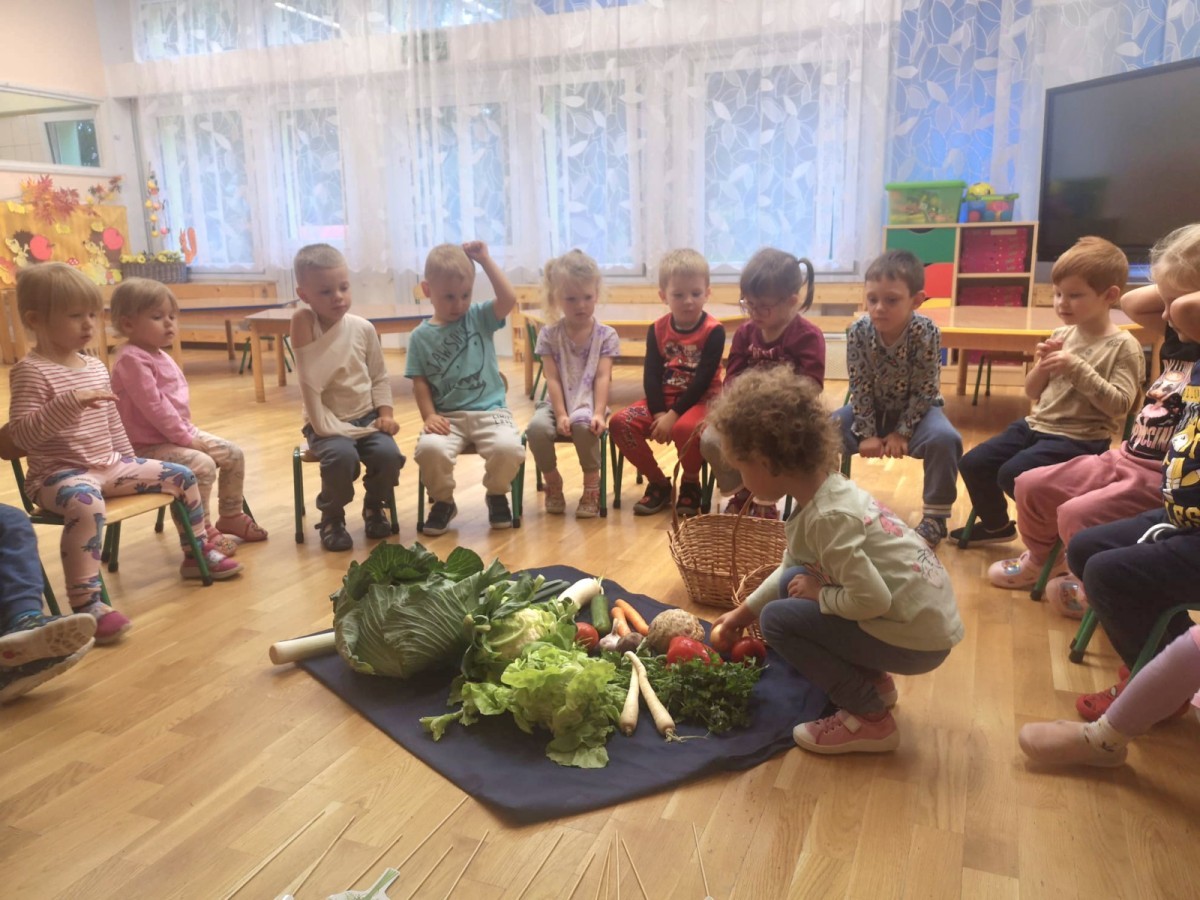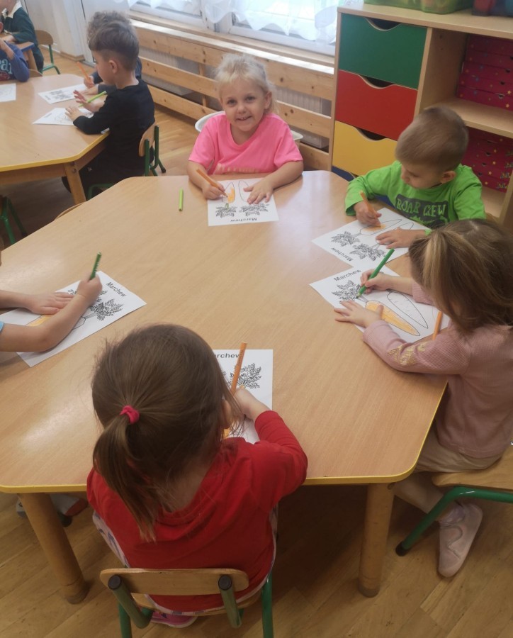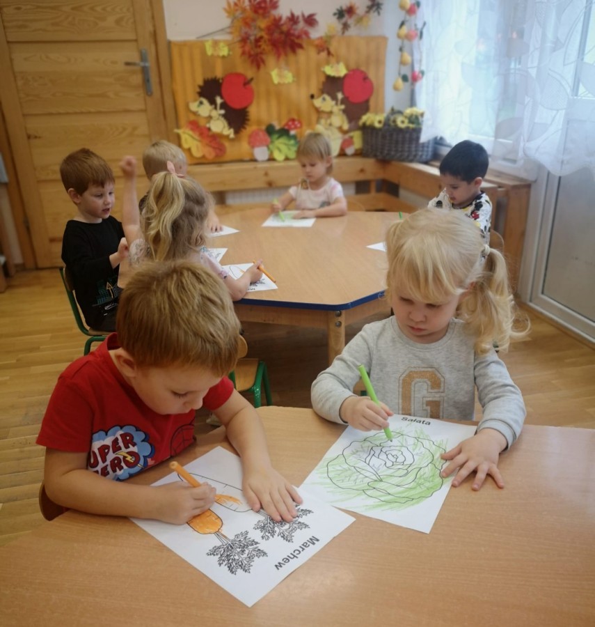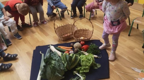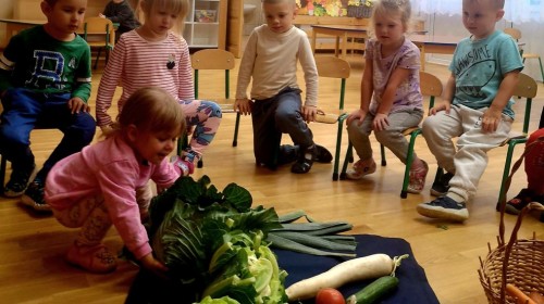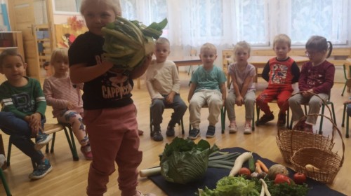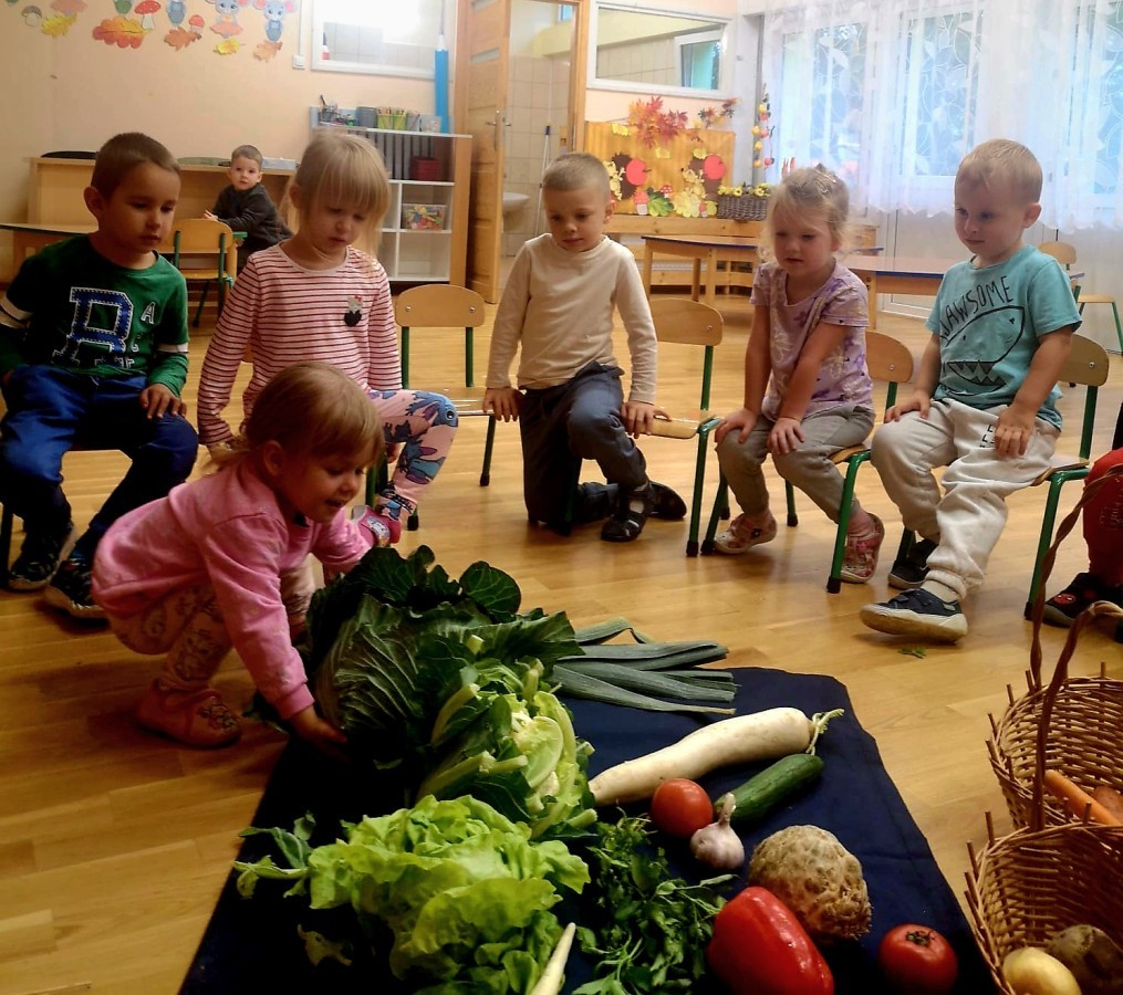 We wtorek 7 października w grupie MYSZKI odbyły się zajęcia o Warzywach, które pomogły dzieciom poznać różne rodzaje warzyw, ich walory odżywcze, sposoby przetwarzania i konieczność spożywania ich na co dzień. Odbył się teatrzyk z sylwetami warzyw na podstawie wiersza J. Brzechwy ,,Na straganie". Dzieci rozpoznawały warzywa za pomocą zmysłów (dotyk, węch, smak), dzieliły warzywa na grupy według rodzaju, kształtu, koloru, rozwiązywały zagadki słowne o warzywach oraz tworzyły prace plastyczne związane z warzywami.