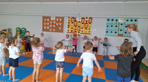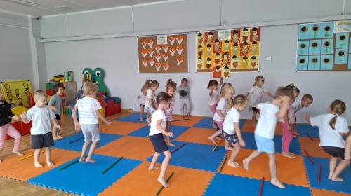 W ramach Projektu Edukacyjnego "Zdrowo i sportowo" grupy: MYSZKI, MOTYLKI, PSZCZÓŁKI, LISKI biorą udział w różnorodnych zajęciach sportowych. Zajęcia te pomagają w kształtowaniu ogólnej sprawności fizycznej, poprawiają balans ciała oraz rozwijają zdolności manualne dzieci. To idealny sposób na aktywną zabawę, która wspiera zdrowy rozwój przedszkolaków.