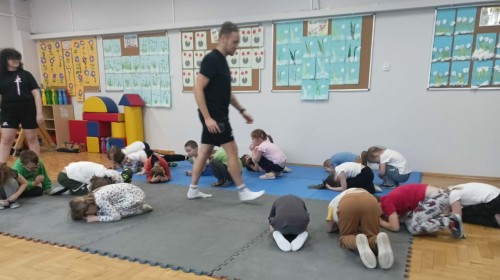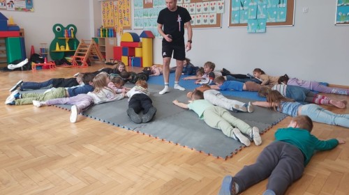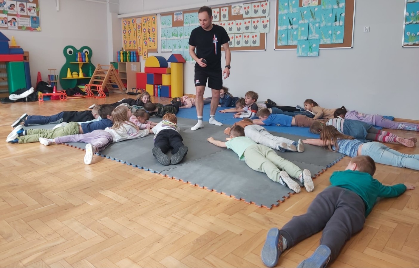 Zajęcia zostały poprowadzone przez doświadczonego trenera współpracującego z projektem, który w profesjonalny, a jednocześnie bardzo przystępny sposób zachęcał dzieci do wspólnej zabawy. Trening miał formę bezpiecznych ćwiczeń ogólnorozwojowych, dostosowanych do wieku i możliwości przedszkolaków. W jego trakcie dzieci rozwijały swoją kondycję, koordynację ruchową, wytrzymałość oraz szybkość, a także uczyły się współpracy i działania w grupie.