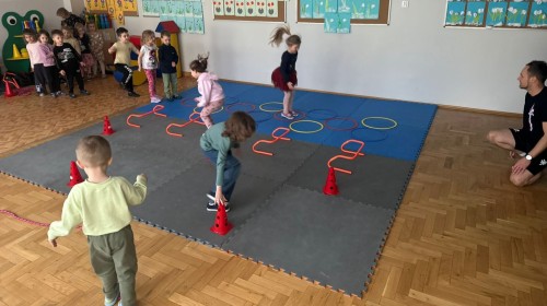 We wtorek, 17 marca, w naszym przedszkolu odbyły się wyjątkowe zajęcia sportowe w ramach projektu „Przedszkolaki Podbeskidzia”, realizowanego pod patronatem Prezydenta Miasta Bielska-Białej. Było to inspirujące spotkanie z aktywnością fizyczną, które dostarczyło dzieciom nie tylko mnóstwo radości, ale również cennych doświadczeń ruchowych.
