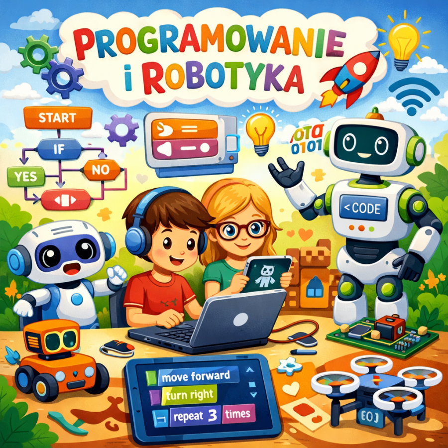 Podczas popołudniowych zajęć z robotyki i programowania w grupie „Misiów” dzieci w atrakcyjny i praktyczny sposób rozwijały kompetencje cyfrowe, logiczne myślenie oraz umiejętność planowania działań. Zajęcia prowadzone były z wykorzystaniem robota edukacyjnego Robot Doc oraz Ozobotów. Dzieci programowały Robota Doc na macie do kodowania, układając sekwencje poleceń tak, aby robot dojechał do wskazanej cyfry, co sprzyjało utrwalaniu znajomości cyfr, orientacji przestrzennej oraz rozumieniu zależności przyczynowo-skutkowych. Pracując z Ozobotami, uczestnicy zajęć tworzyli trasy i kody kolorystyczne na tablicy interaktywnej, a także korzystali z aplikacji Ozobot online, ucząc się podstaw programowania w formie zabawy. Dodatkowo dzieci projektowały trasy z puzzli i programowały przejazd Ozobotów po samodzielnie ułożonych ścieżkach. Zajęcia sprzyjały rozwijaniu koncentracji uwagi, wytrwałości w działaniu, współpracy w grupie oraz samodzielnego rozwiązywania problemów, łącząc naukę z aktywnym i twórczym działaniem.