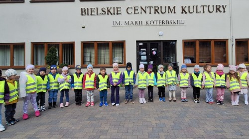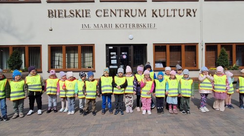 Grupa „Motylki” oraz „Liski” wybrała się na spektakl muzyczny „Co by było gdyby” do Bielskiego Centrum Kultury. Przedstawienie dostarczyło dzieciom wielu radości i niezapomnianych wrażeń. Mali widzowie z dużym zainteresowaniem śledzili losy bohaterów, aktywnie reagując na muzykę, śpiew i barwne sceny.