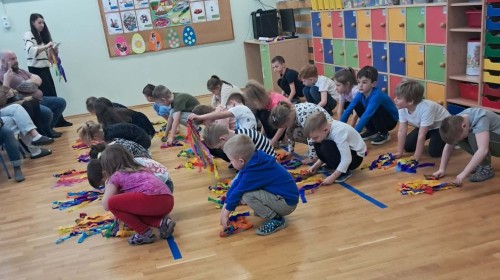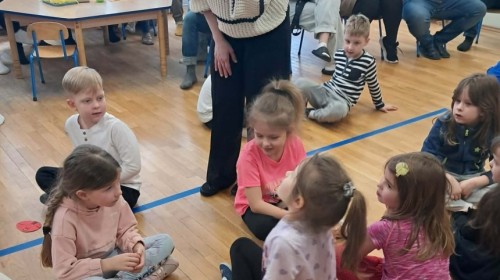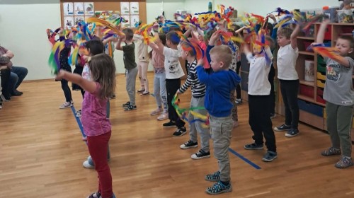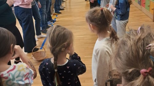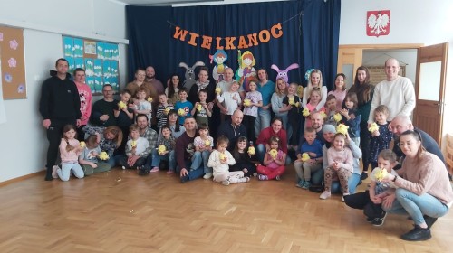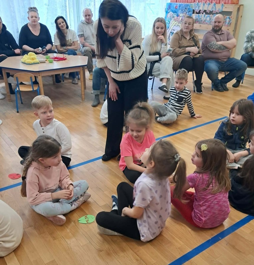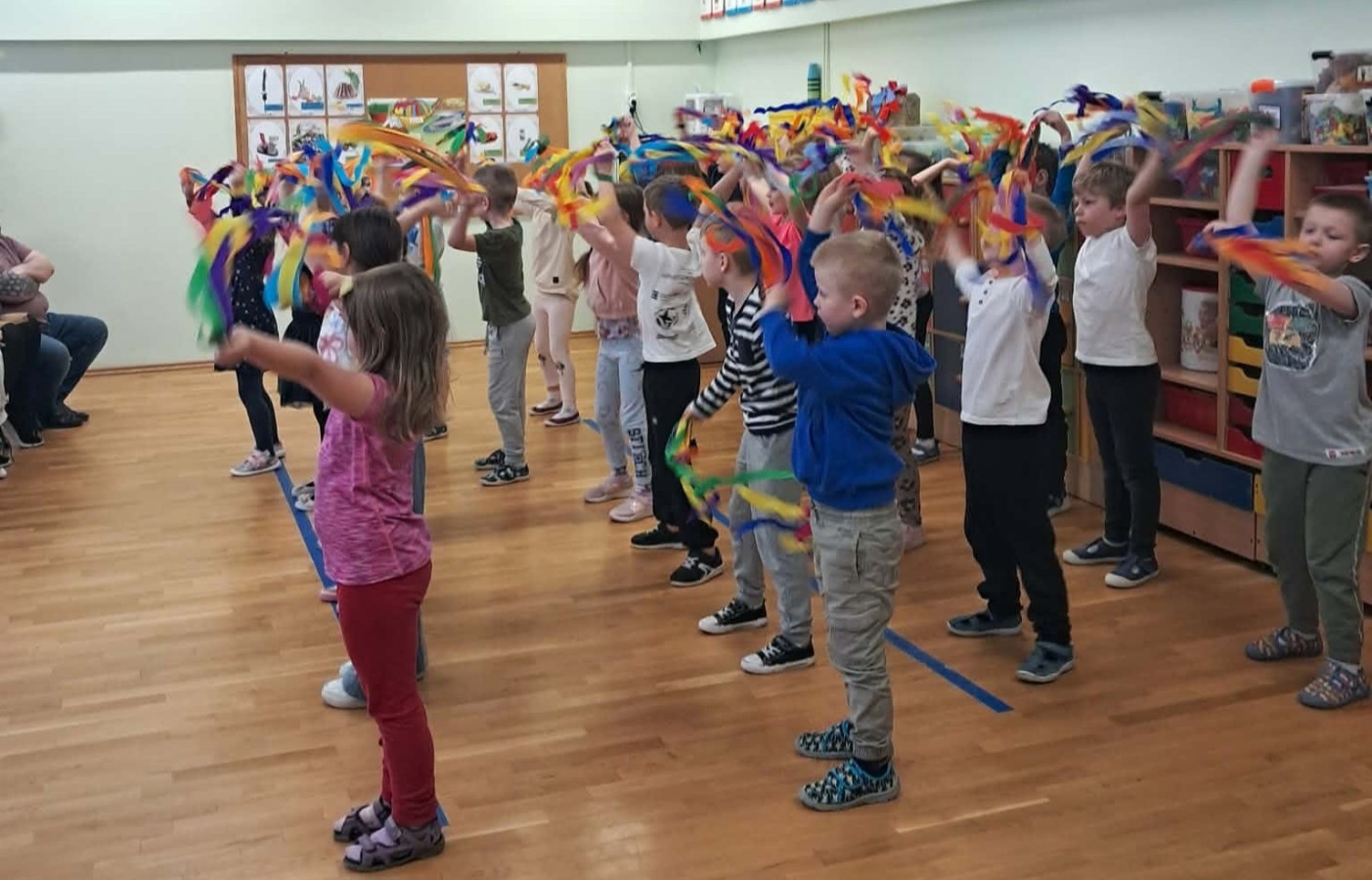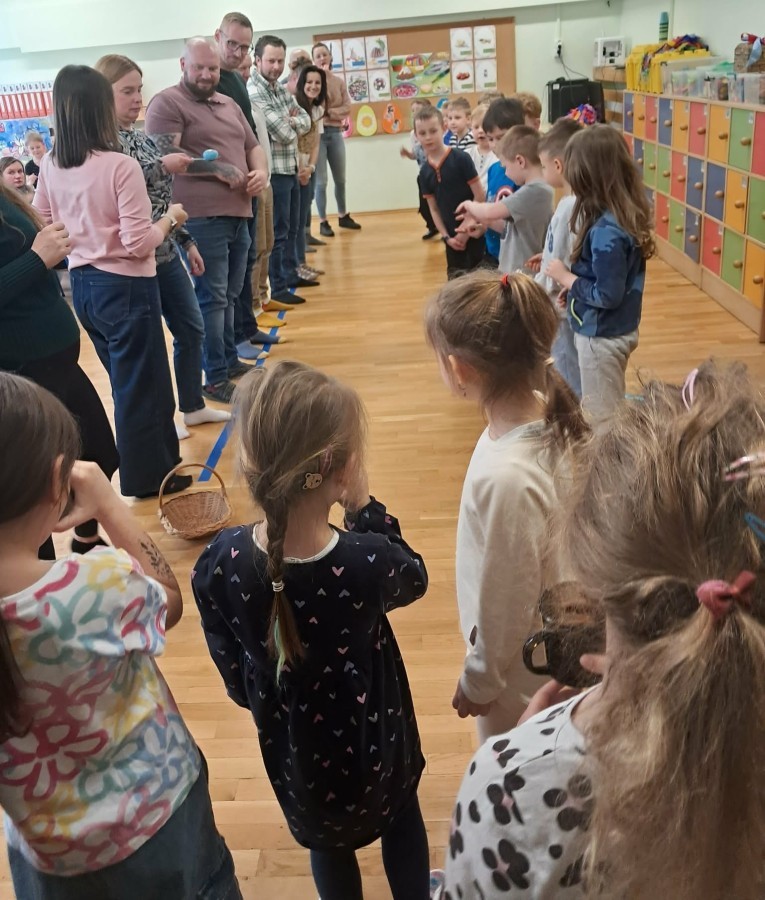 Grupa „Misie” wraz z rodzicami wzięła udział w radosnych warsztatach wielkanocnych. Spotkanie rozpoczęło się od serdecznego powitania gości wiosenną piosenką oraz efektownym tańcem ze wstążkami, które wprowadziły wszystkich w świąteczny, pełen energii nastrój.