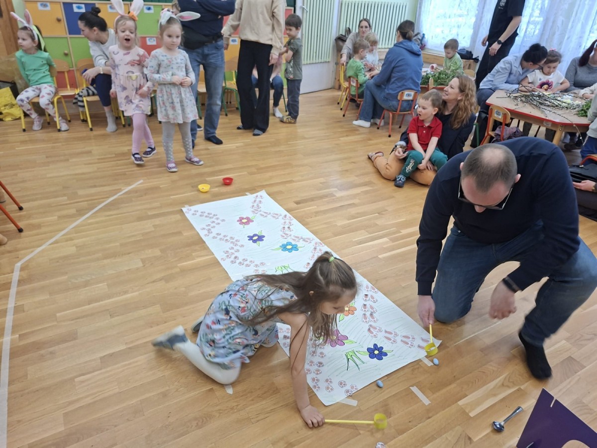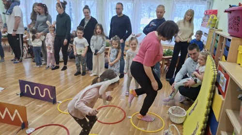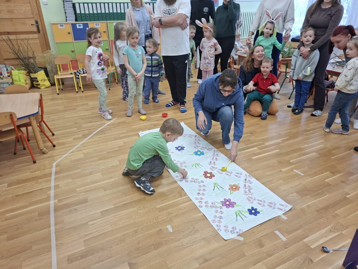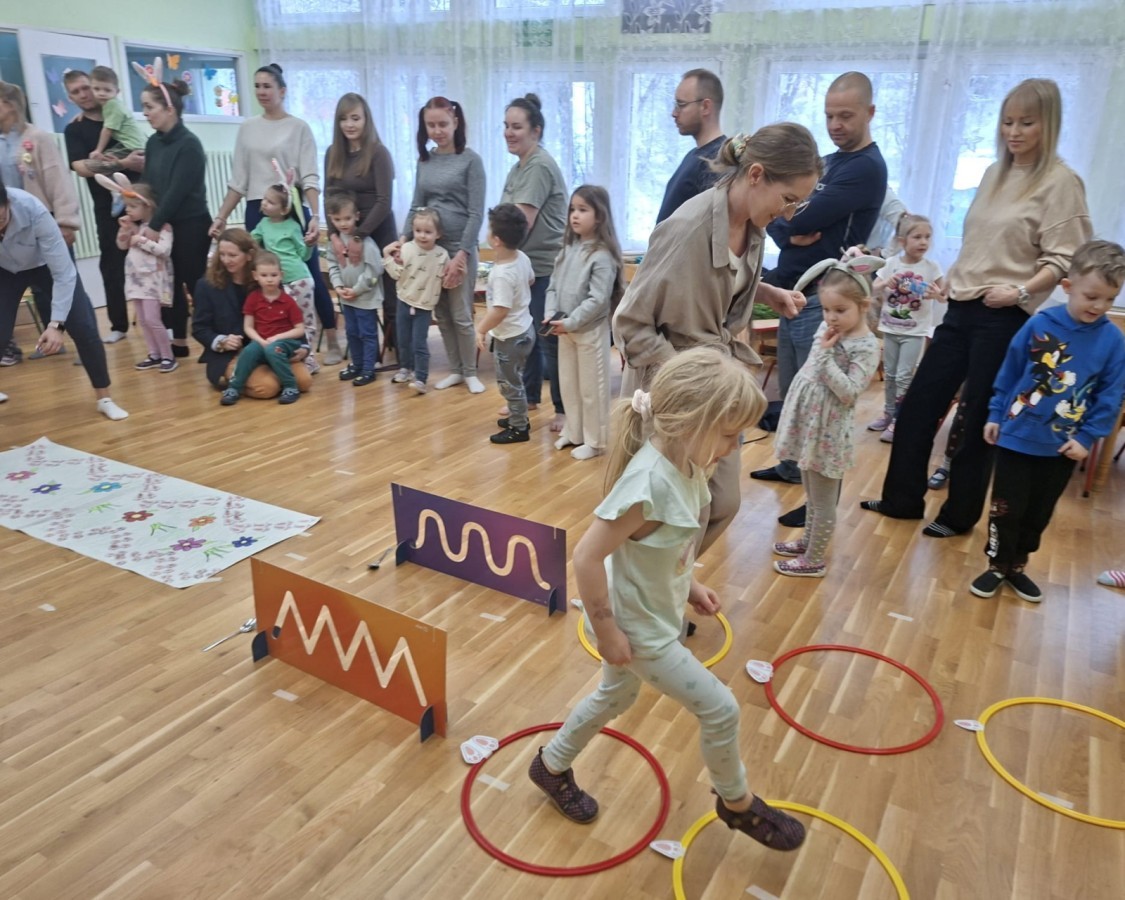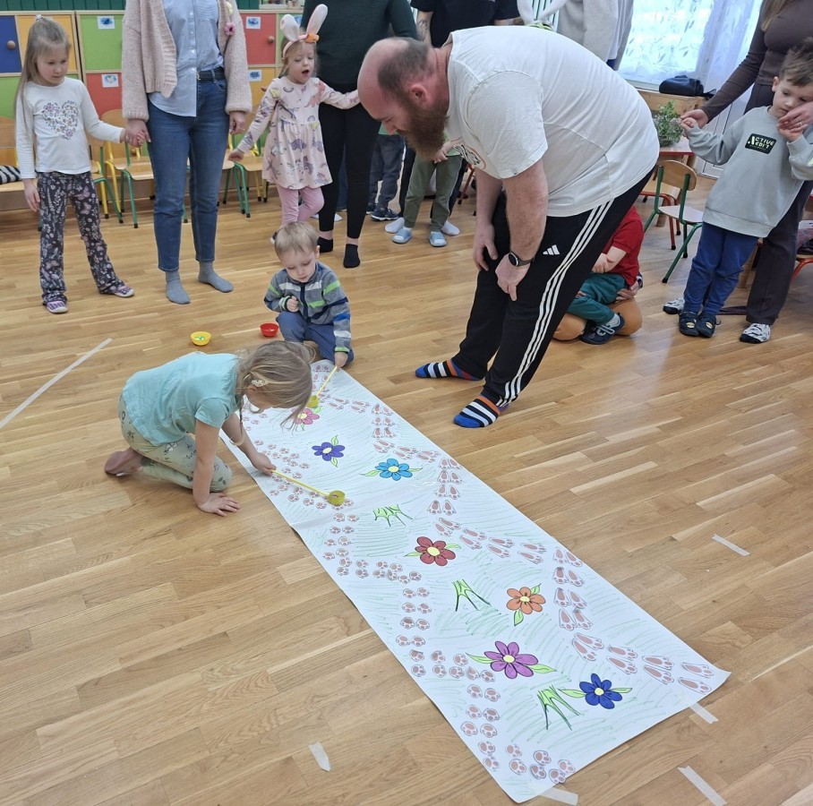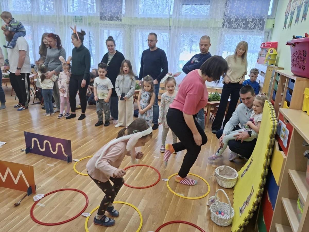 Grupa „Motylki” wzięła udział w wyjątkowych warsztatach wielkanocnych z udziałem rodziców. Spotkanie rozpoczęło się od krótkiego, ale bardzo uroczego występu artystycznego dzieci, który wprowadził wszystkich w świąteczny nastrój. Następnie przyszedł czas na wspólną zabawę – emocjonujący wyścig „Króliczek zanosi pisankę”, w którym rodzice rywalizowali ze swoimi dziećmi. Radości, śmiechu i pozytywnych emocji nie brakowało!