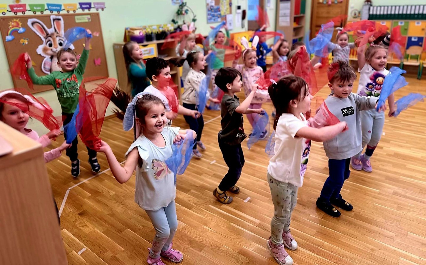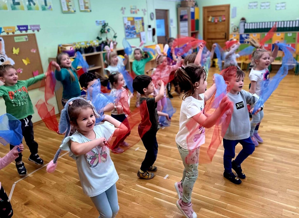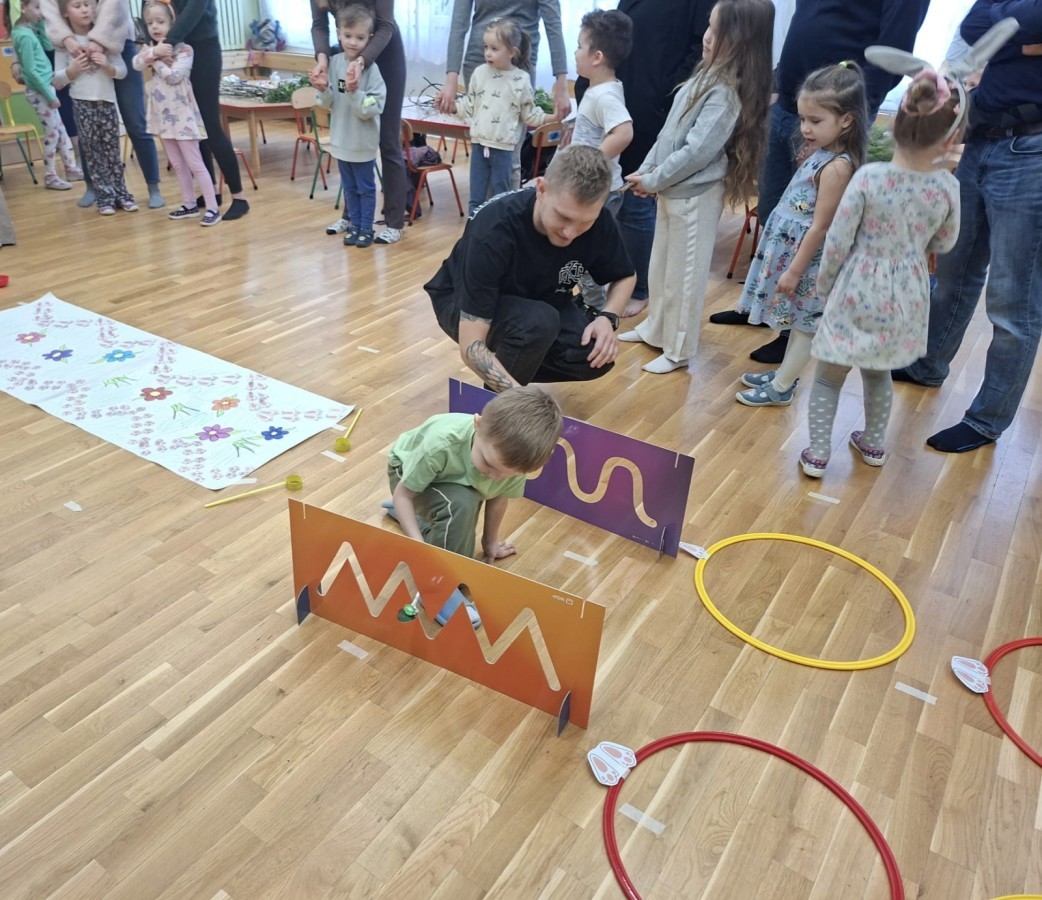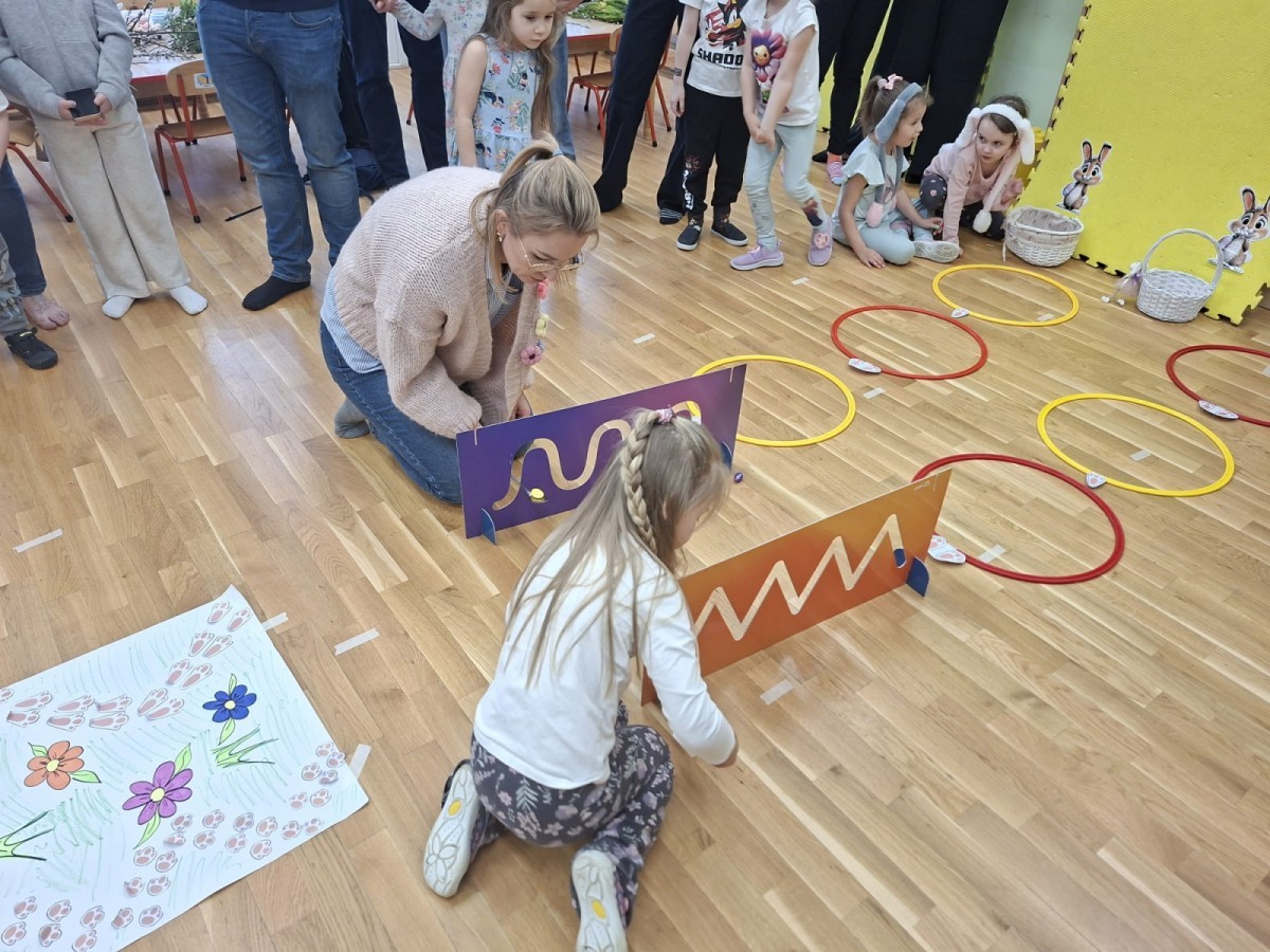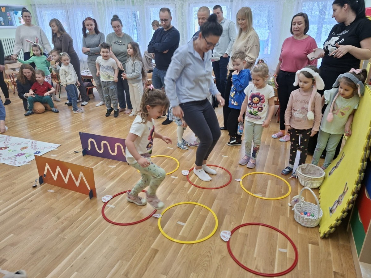 Grupa „Motylki” wzięła udział w wyjątkowych warsztatach wielkanocnych z udziałem rodziców. Spotkanie rozpoczęło się od krótkiego, ale bardzo uroczego występu artystycznego dzieci, który wprowadził wszystkich w świąteczny nastrój. Następnie przyszedł czas na wspólną zabawę – emocjonujący wyścig „Króliczek zanosi pisankę”, w którym rodzice rywalizowali ze swoimi dziećmi. Radości, śmiechu i pozytywnych emocji nie brakowało!