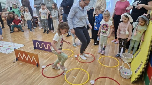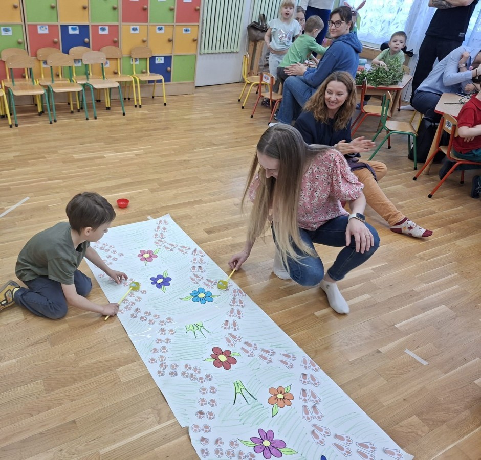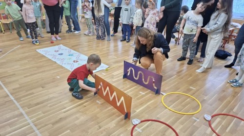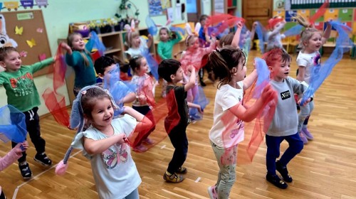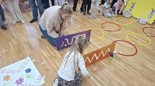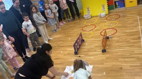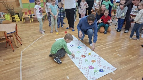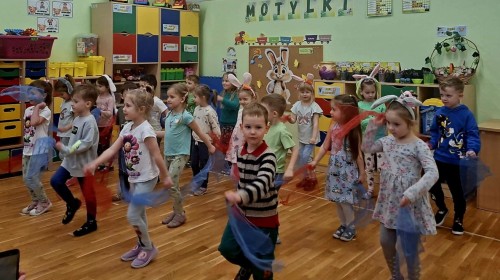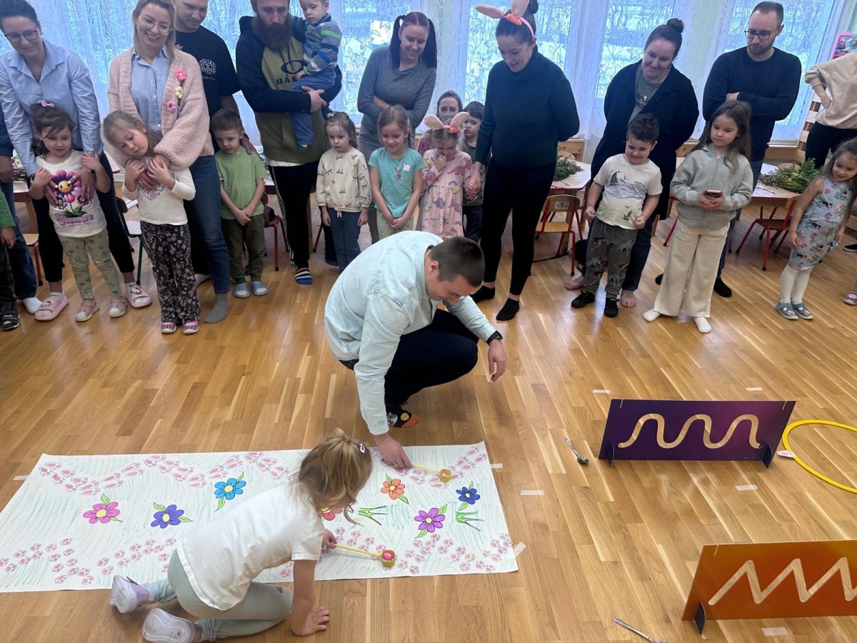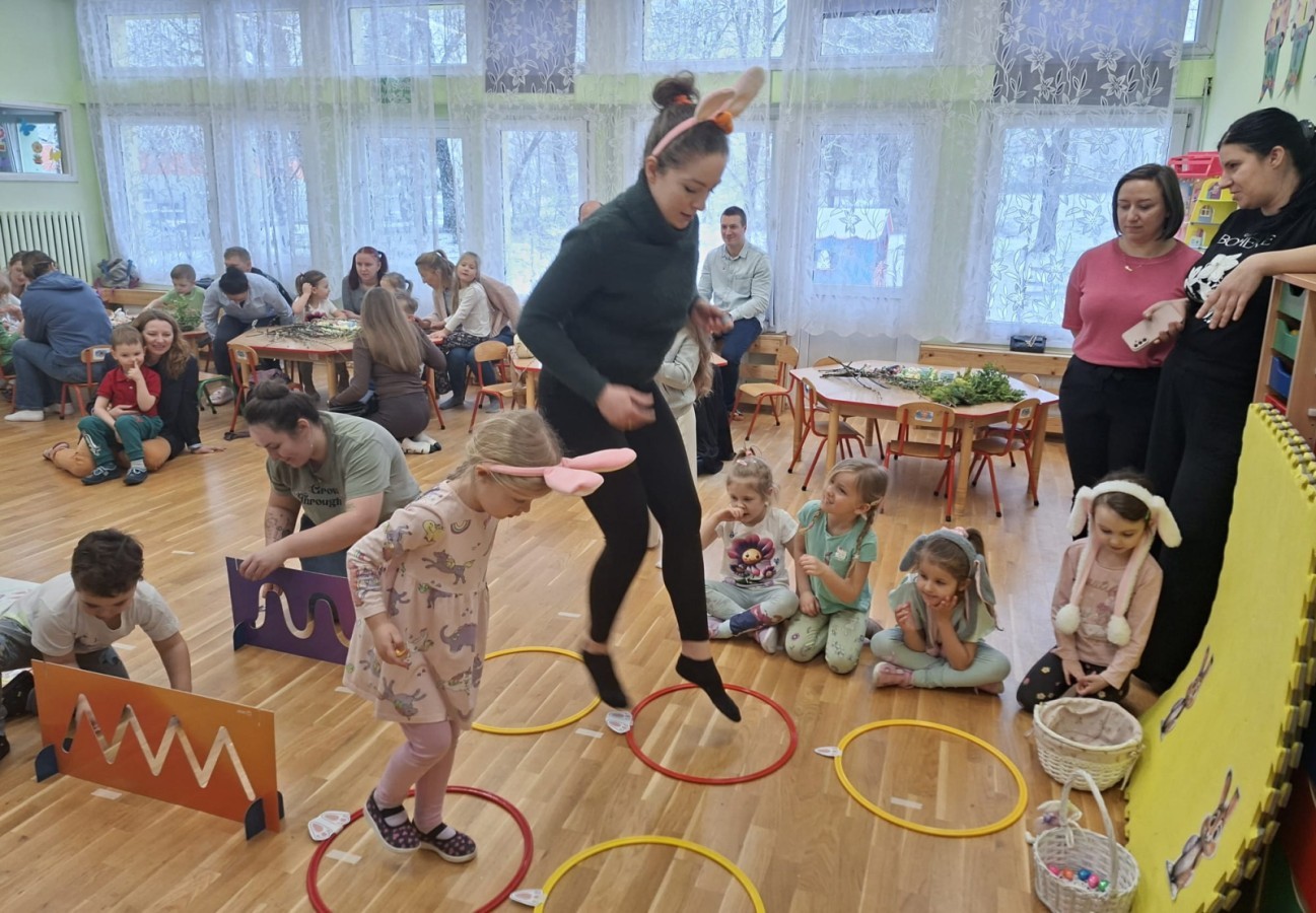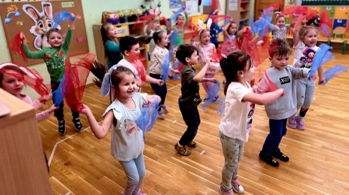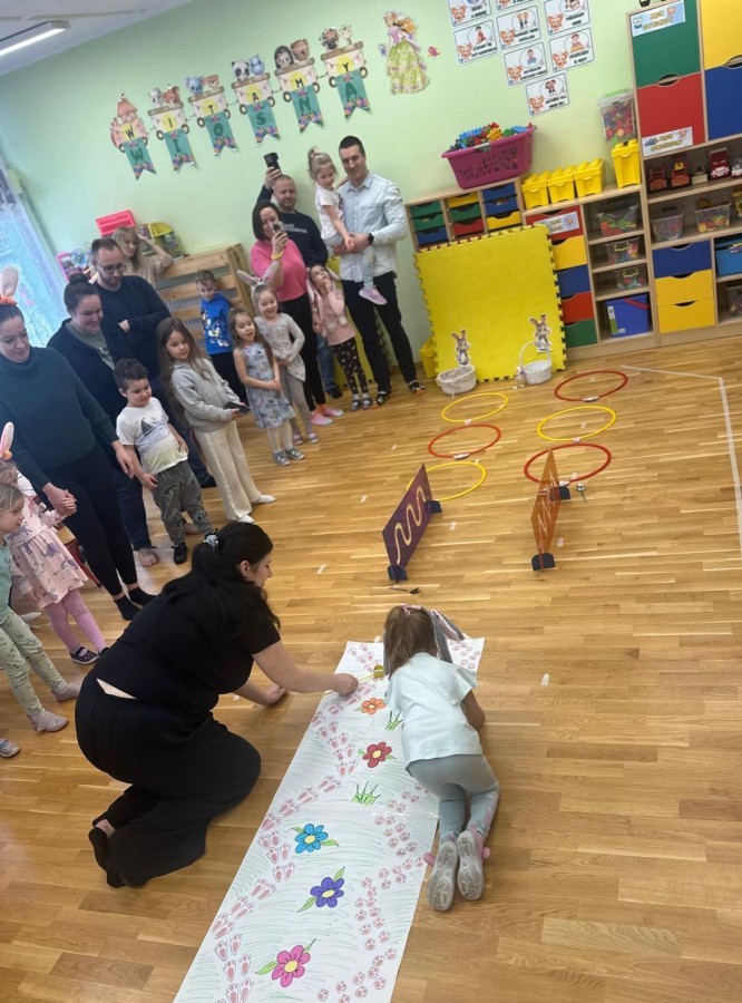 Grupa „Motylki” wzięła udział w wyjątkowych warsztatach wielkanocnych z udziałem rodziców. Spotkanie rozpoczęło się od krótkiego, ale bardzo uroczego występu artystycznego dzieci, który wprowadził wszystkich w świąteczny nastrój. Następnie przyszedł czas na wspólną zabawę – emocjonujący wyścig „Króliczek zanosi pisankę”, w którym rodzice rywalizowali ze swoimi dziećmi. Radości, śmiechu i pozytywnych emocji nie brakowało!