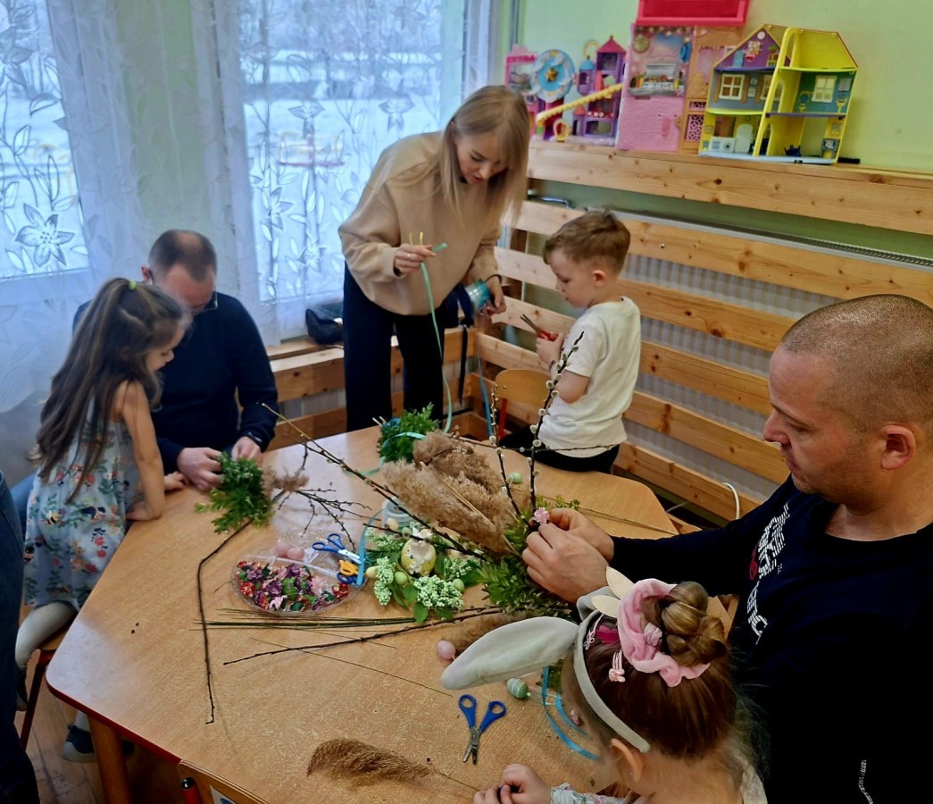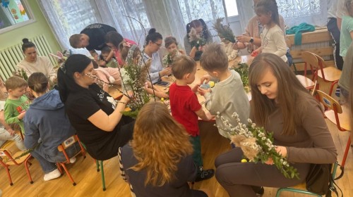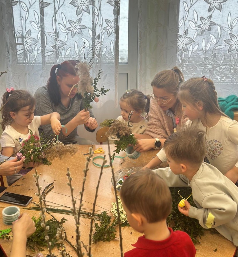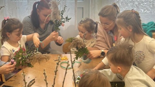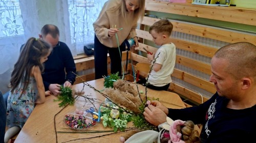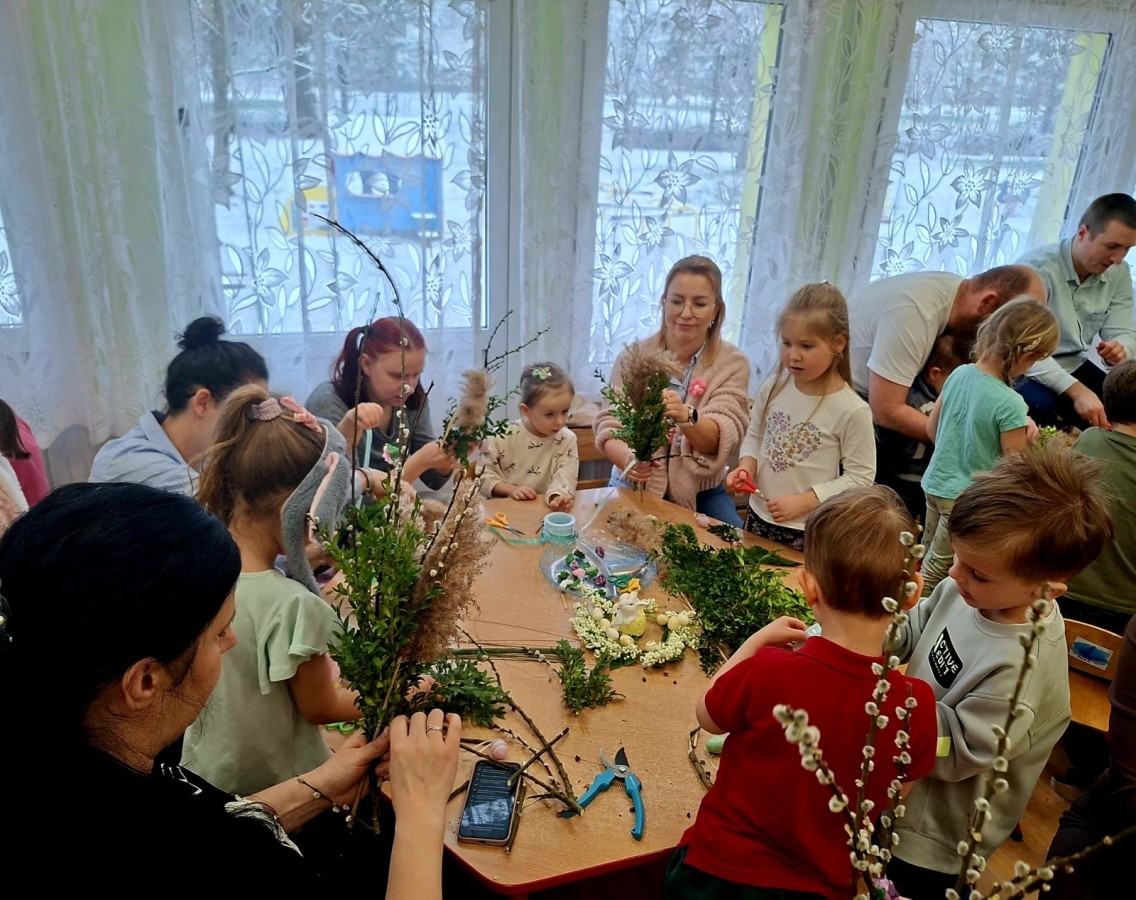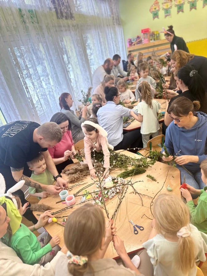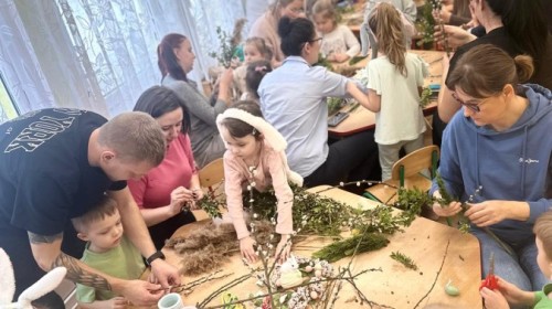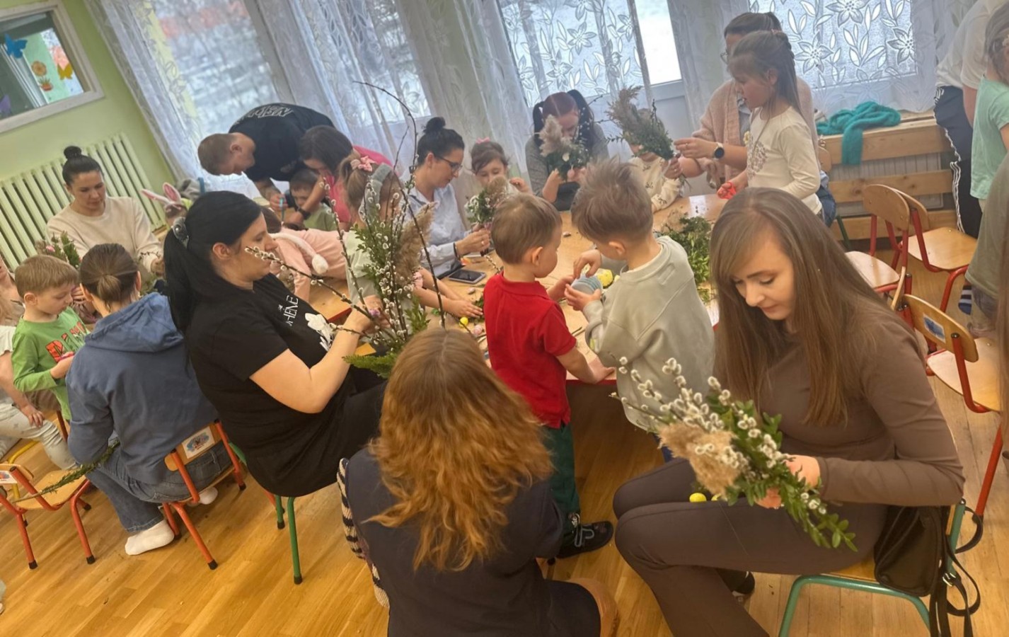 Na zakończenie warsztatów dzieci wraz z rodzicami wykonały piękne palmy wielkanocne, rozwijając swoją kreatywność i zdolności manualne.