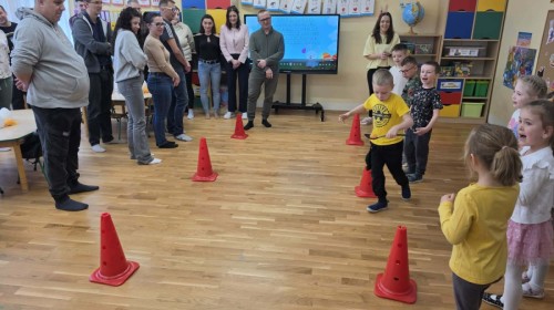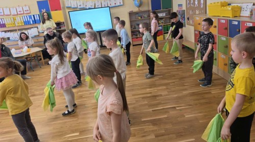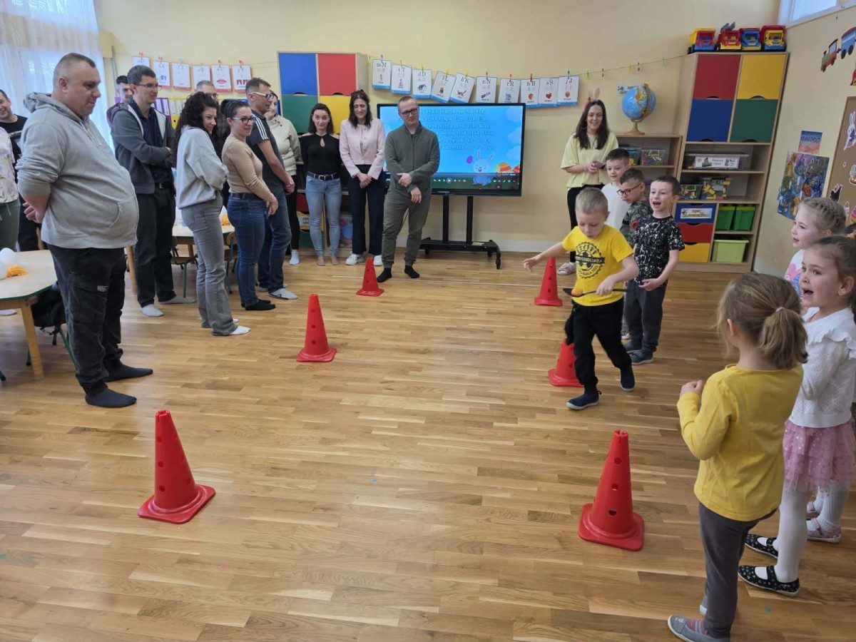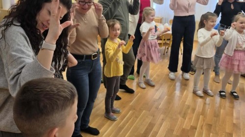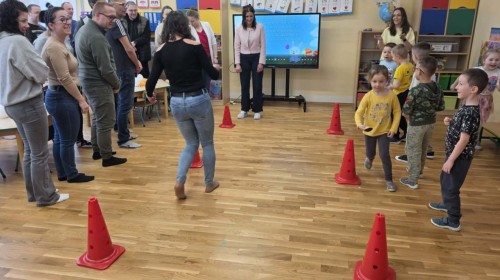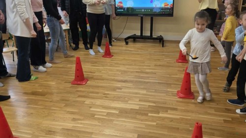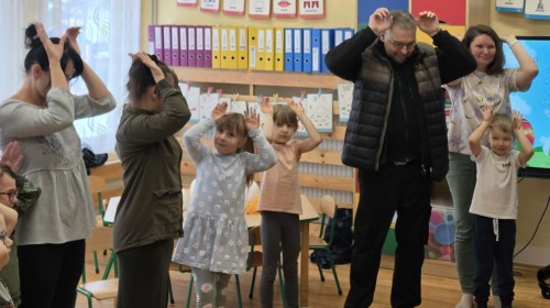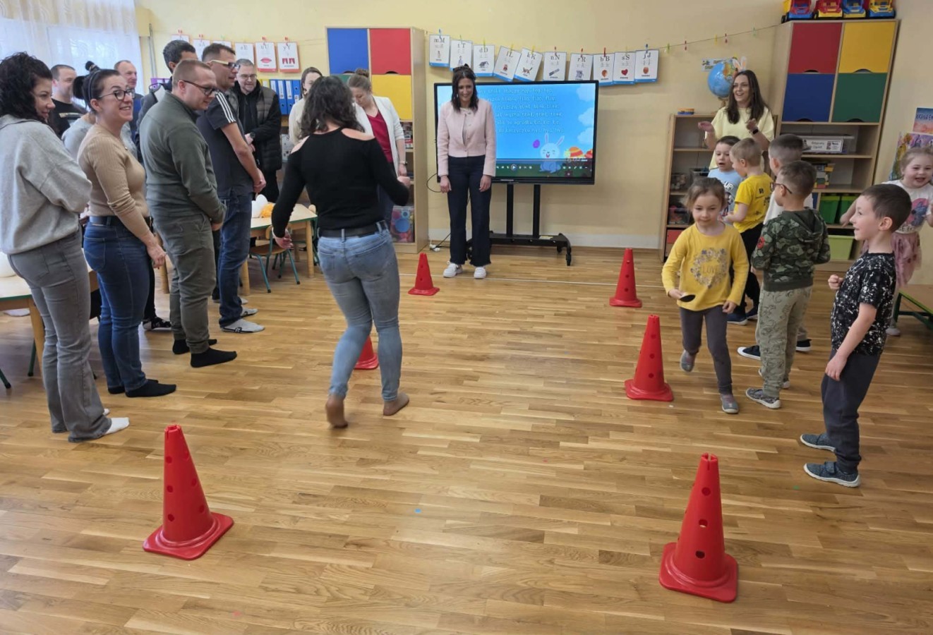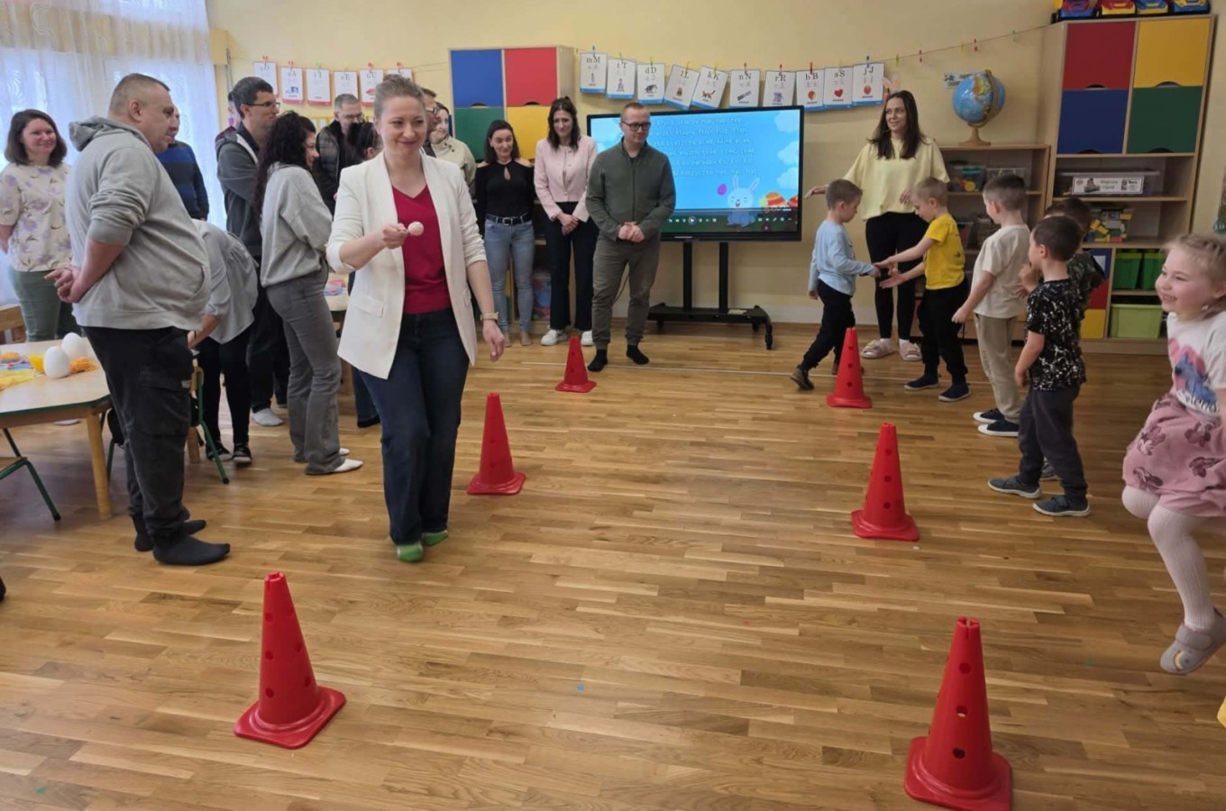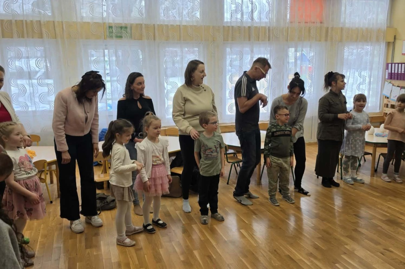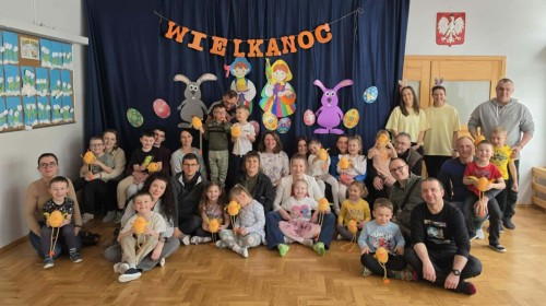 Grupa „Pszczółki” zaprosiła swoich rodziców na wyjątkowe warsztaty wielkanocne w przedszkolu. Spotkanie upłynęło w radosnej i pełnej energii atmosferze – nie zabrakło wspólnych tańców oraz emocjonujących wyścigów z pisanką, które dostarczyły wszystkim wielu uśmiechów i dobrej zabawy.