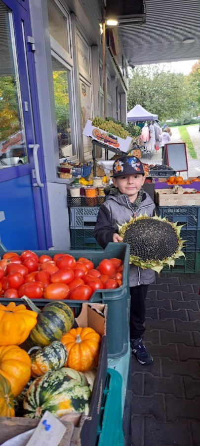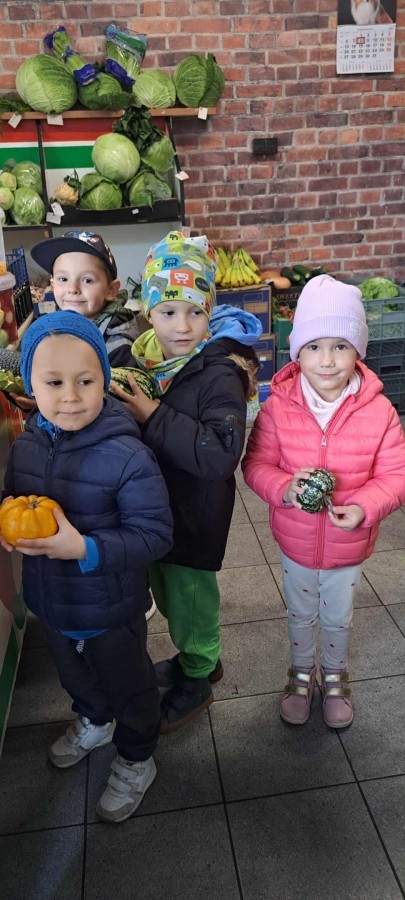 Grupa "Liski" wybrała się na wycieczkę do warzywniaka. Dzieci miały okazję poznać różne rodzaje warzyw- oglądaliśmy, dotykaliśmy i nazywaliśmy je wszystkie. Podczas wizyty kupiliśmy dużą dynię oraz słonecznik. W najbliższych dniach będziemy: bawić się nasionami, poznawać, co kryje się w środku dyni oraz tworzyć masy sensoryczne z zebranych skarbów natury. To byłą wspaniała, pachnąca jesienią przygoda pełna kolorów i nowych doświadczeń.