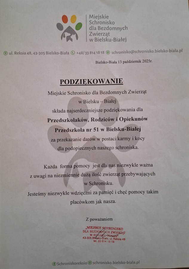 Państwa otwarte serca i chęć niesienia pomocy są dla nas ogromnym wsparciem i pięknym przykładem dla dzieci. To dzięki takim gestom uczymy najmłodszych empatii, odpowiedzialności i troski o innych – również tych, którzy nie potrafią poprosić o pomoc słowami.