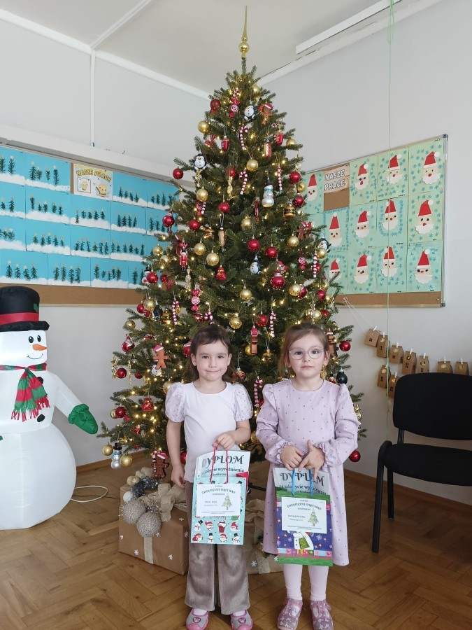 Oliwia Stopa i Varvara Kholodko z grupy "Liski" zdobyły wyróżnienie w konkursie plastycznym "Świąteczne drzewko" organizowanym przez Przedszkole nr 29 w Bielsku-Białej.