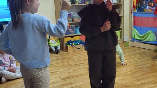 Zajęcia upłynęły w pogodnej, pełnej zabawy atmosferze. Dzieci miały okazję rozwijać słuch, wzrok, koordynację i współpracę – wszystko w deszczowym, bardzo atrakcyjnym dla nich klimacie! ☔✨