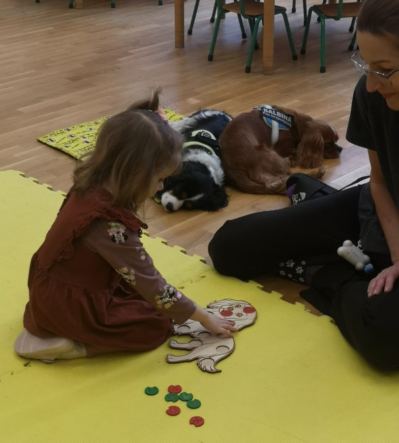 Podczas zajęć dzieci uczestniczyły w różnych aktywnościach ruchowych i sensorycznych z udziałem piesków, co pozytywnie wpłynęło na ich koncentrację, koordynację ruchową oraz rozwój motoryki. Dogoterapia sprzyjała również przełamywaniu nieśmiałości, redukcji napięcia emocjonalnego oraz wzmacnianiu poczucia bezpieczeństwa i pewności siebie u dzieci.