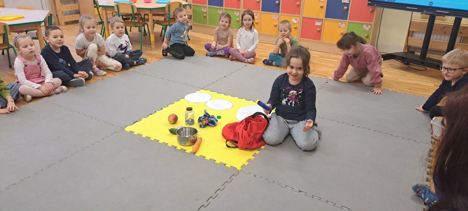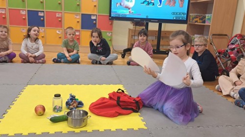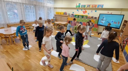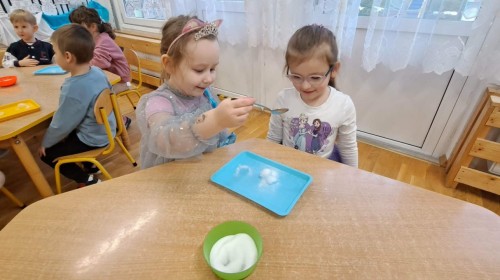 Podczas zimowych zajęć edukacyjnych dzieci z grupy Lisków wcieliły się w rolę małych badaczy. Spotkanie rozpoczęło się zabawą ruchowo-słowną „Ulepmy bałwanka”, która wprowadziła dzieci w tematykę zimy i pobudziła ich wyobraźnię. Następnie przedszkolaki brały udział w prostych eksperymentach badawczych, odkrywając właściwości lodu i obserwując zachodzące zmiany.