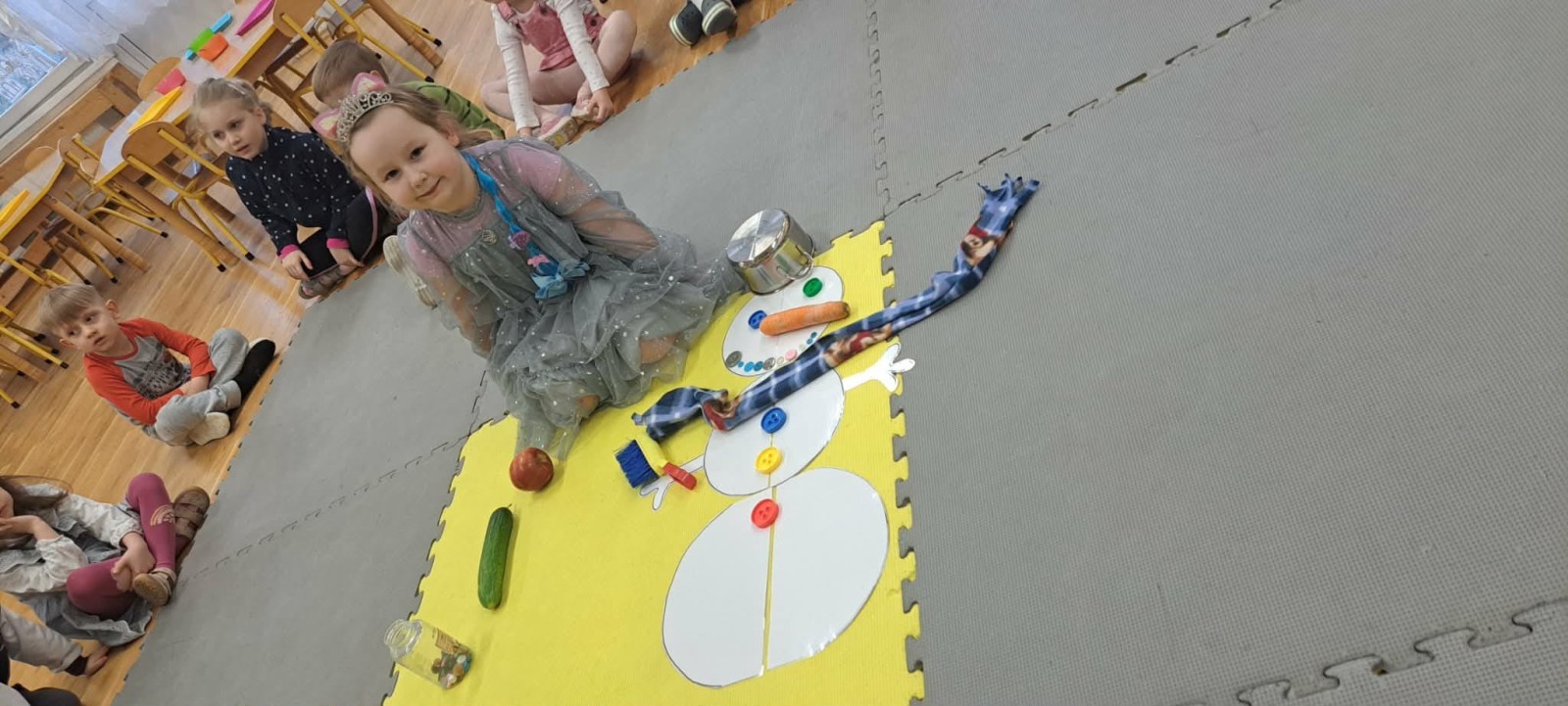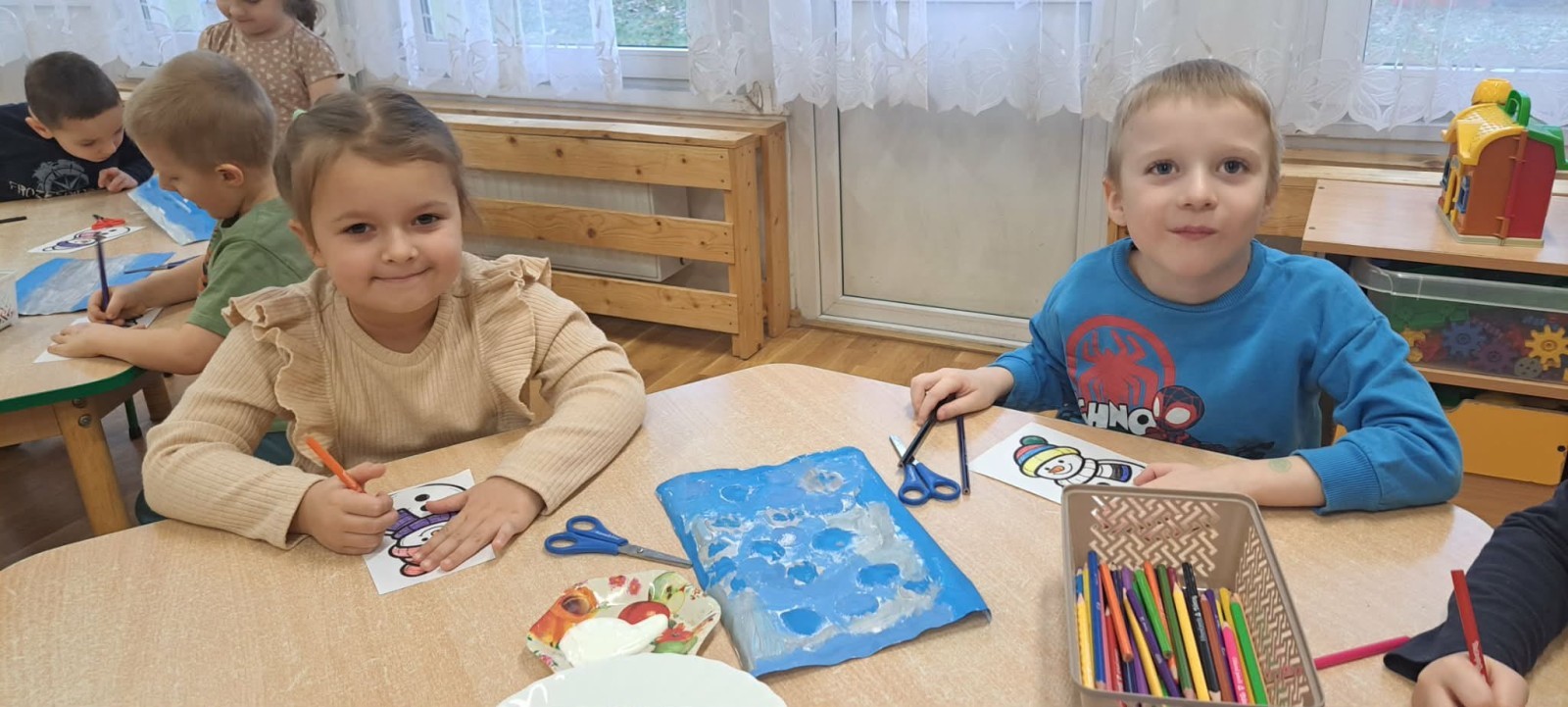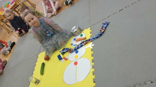 Nie zabrakło również aktywności ruchowych inspirowanych zimowymi zjawiskami oraz twórczej pracy plastycznej, podczas której dzieci stworzyły zimowy krajobraz z bałwankiem. Zajęcia zakończyły się zabawą muzyczno-rytmiczną „Lodowa iskierka” oraz wręczeniem odznak „Małego Zimowego Badacza”, które sprawiły dzieciom wiele radości.